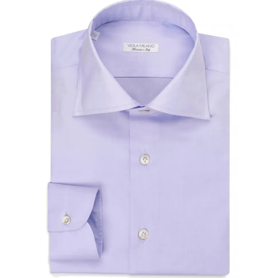 Viola Milano – Solid Handmade Cutaway-Collar Shirt – Purple Blue – Handmade in Italy – Luxury Exclusive Collection