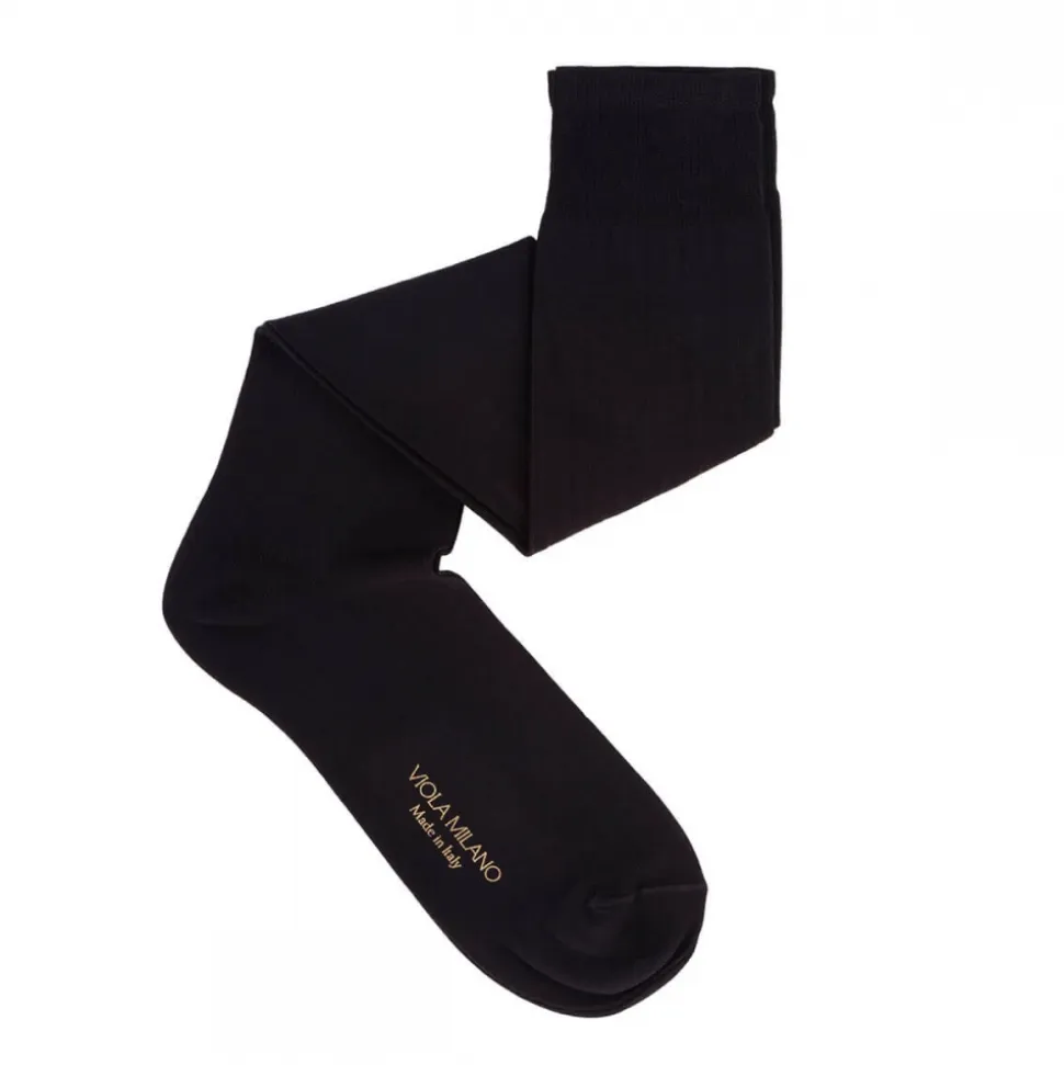 Viola Milano – Solid Over-the-Calf Cotton and Silk Socks – Black – Handmade in Italy – Luxury Exclusive Collection