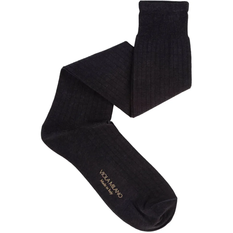 Viola Milano – Solid Over-The-Calf Cotton/Silk Socks – Dark Grey – Handmade in Italy – Luxury Exclusive Collection