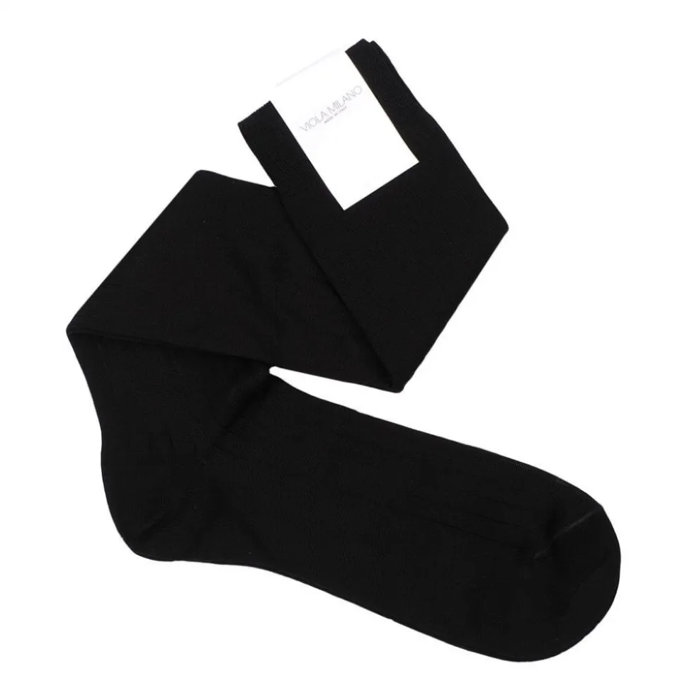 Viola Milano – Solid Over-the-Calf Socks – Black – Handmade in Italy – Luxury Exclusive Collection