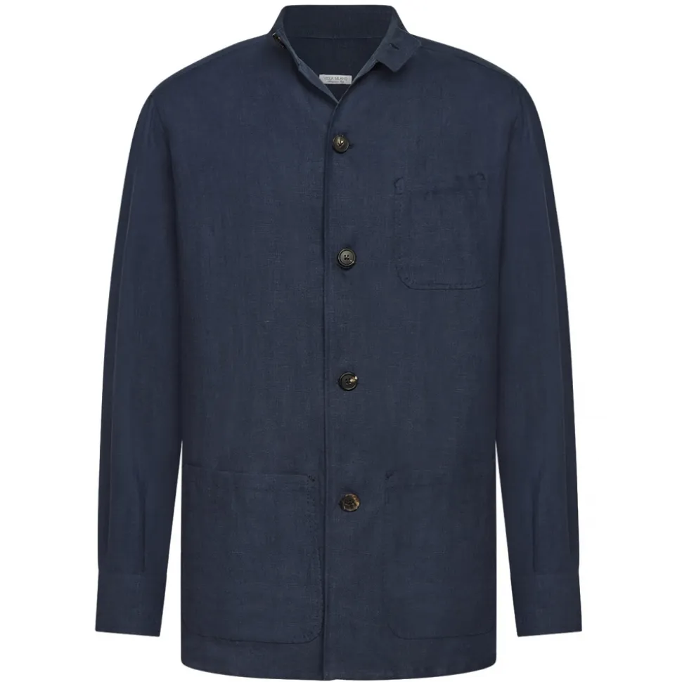 Viola Milano – Solid Safari 100% Linen Overshirt – Navy – Handmade in Italy – Luxury Exclusive Collection