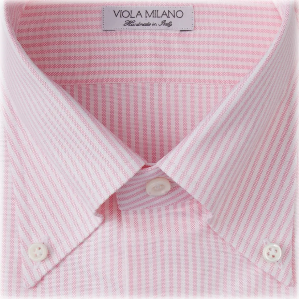 Viola Milano – Stripe American Oxford Button-Down Collar Dress Shirt – Pink/White – Handmade in Italy – Luxury Exclusive Collection