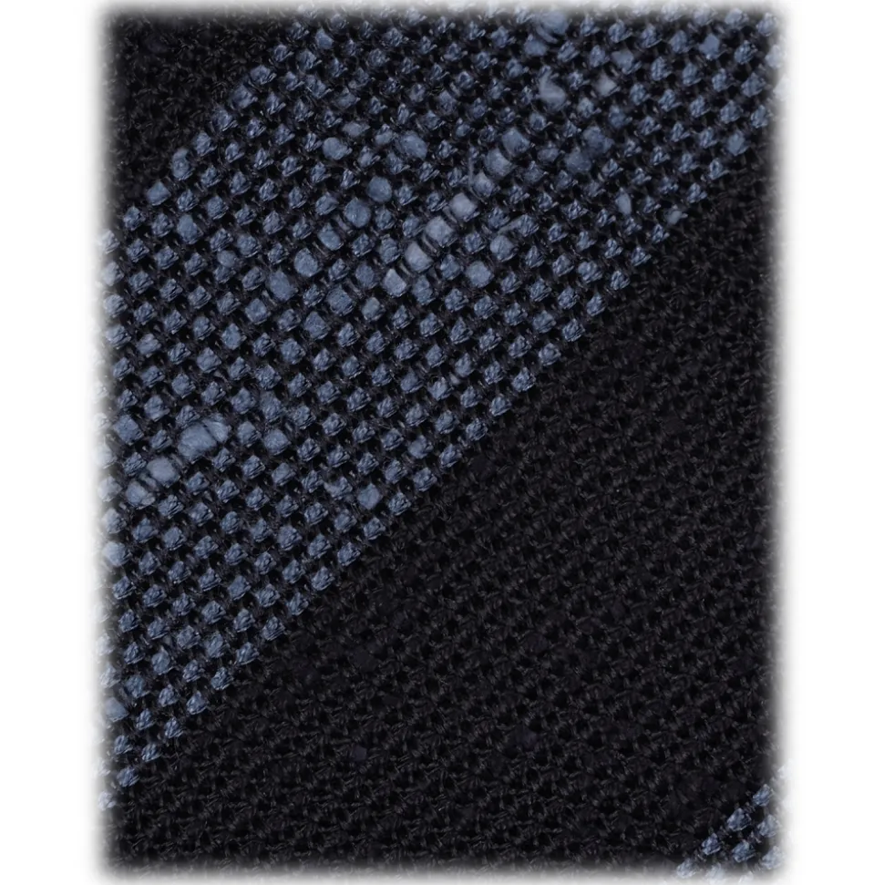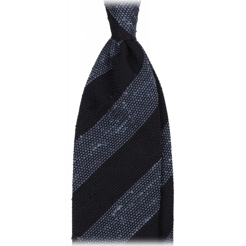 Viola Milano – Stripe Handrolled Woven Grenadine/Shantung Tie – Navy/Sea Mix – Handmade in Italy – Luxury Exclusive Collection