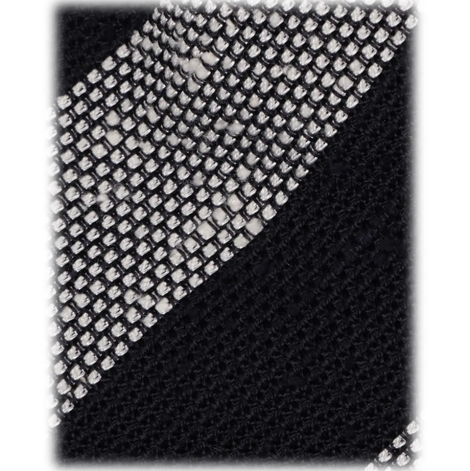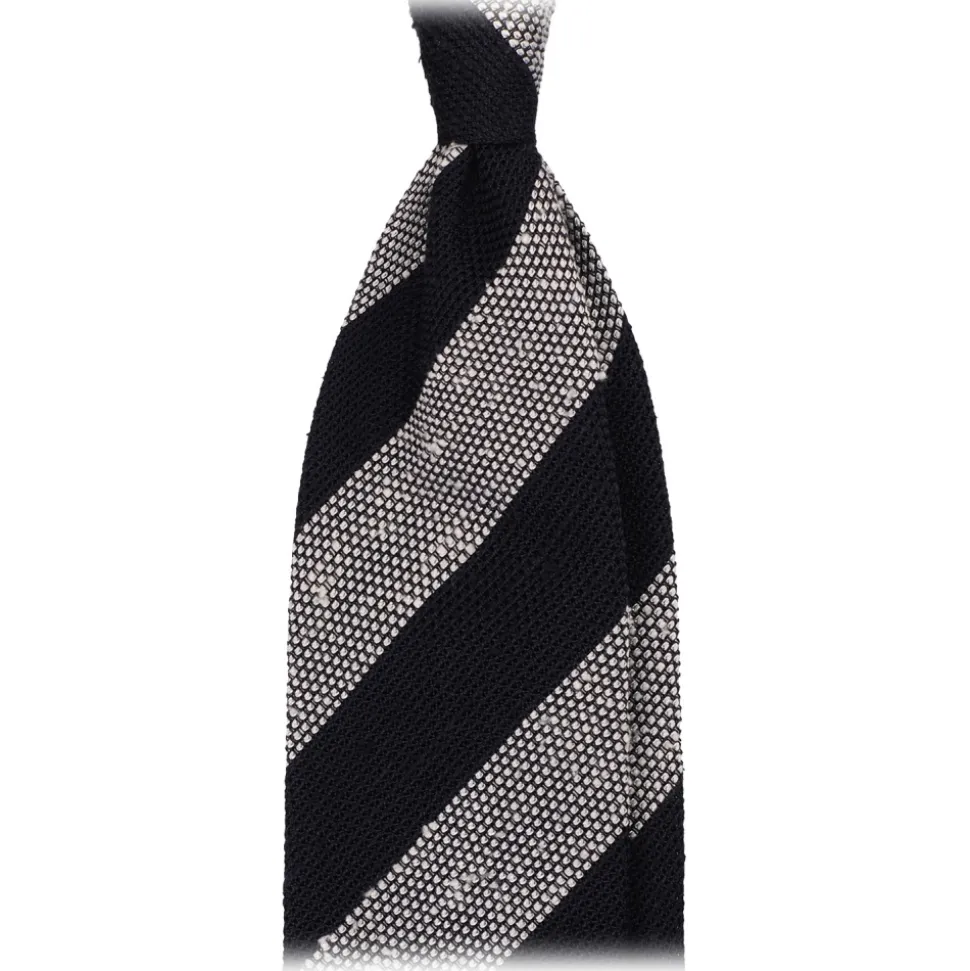 Viola Milano – Stripe Handrolled Woven Grenadine/Shantung Tie – Navy/White – Handmade in Italy – Luxury Exclusive Collection