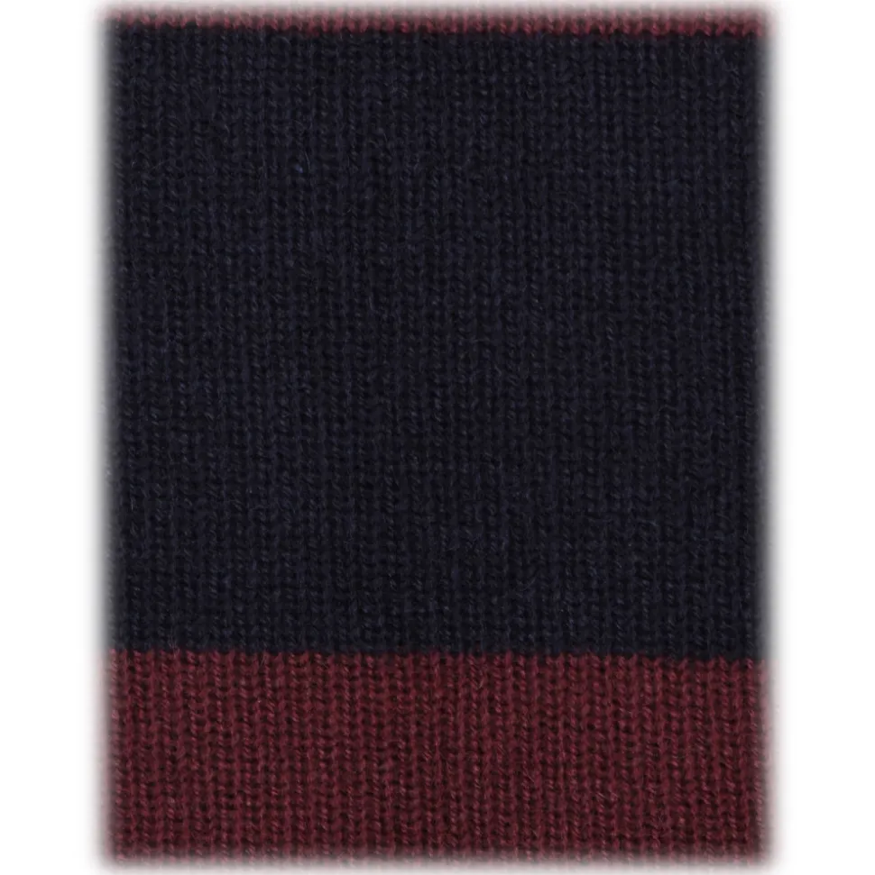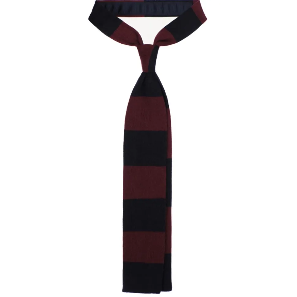 Viola Milano – Stripe Knitted 100% Cashmere Tie – Navy/Wine – Handmade in Italy – Luxury Exclusive Collection