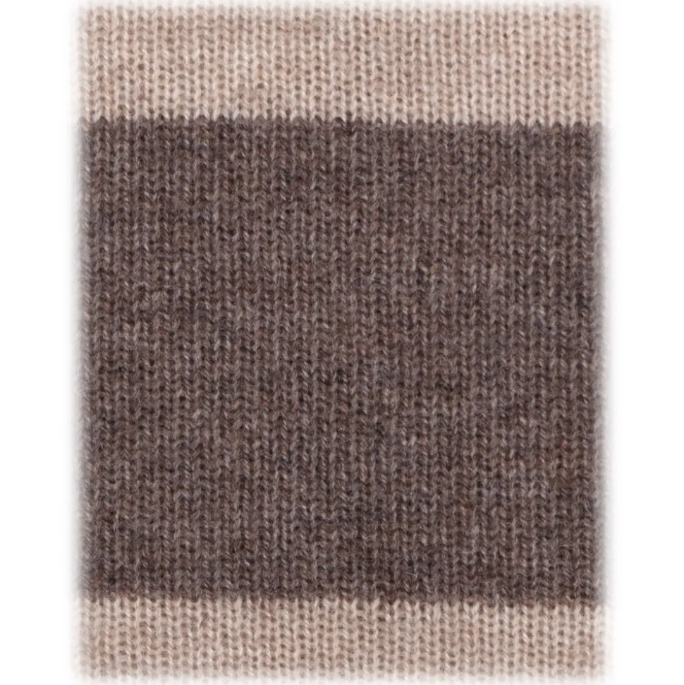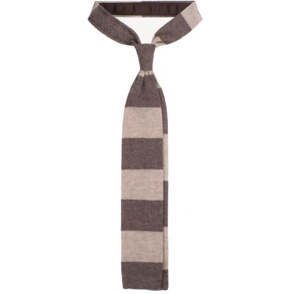 Viola Milano – Stripe Knitted 100% Cashmere Tie – Sand/Beige – Handmade in Italy – Luxury Exclusive Collection