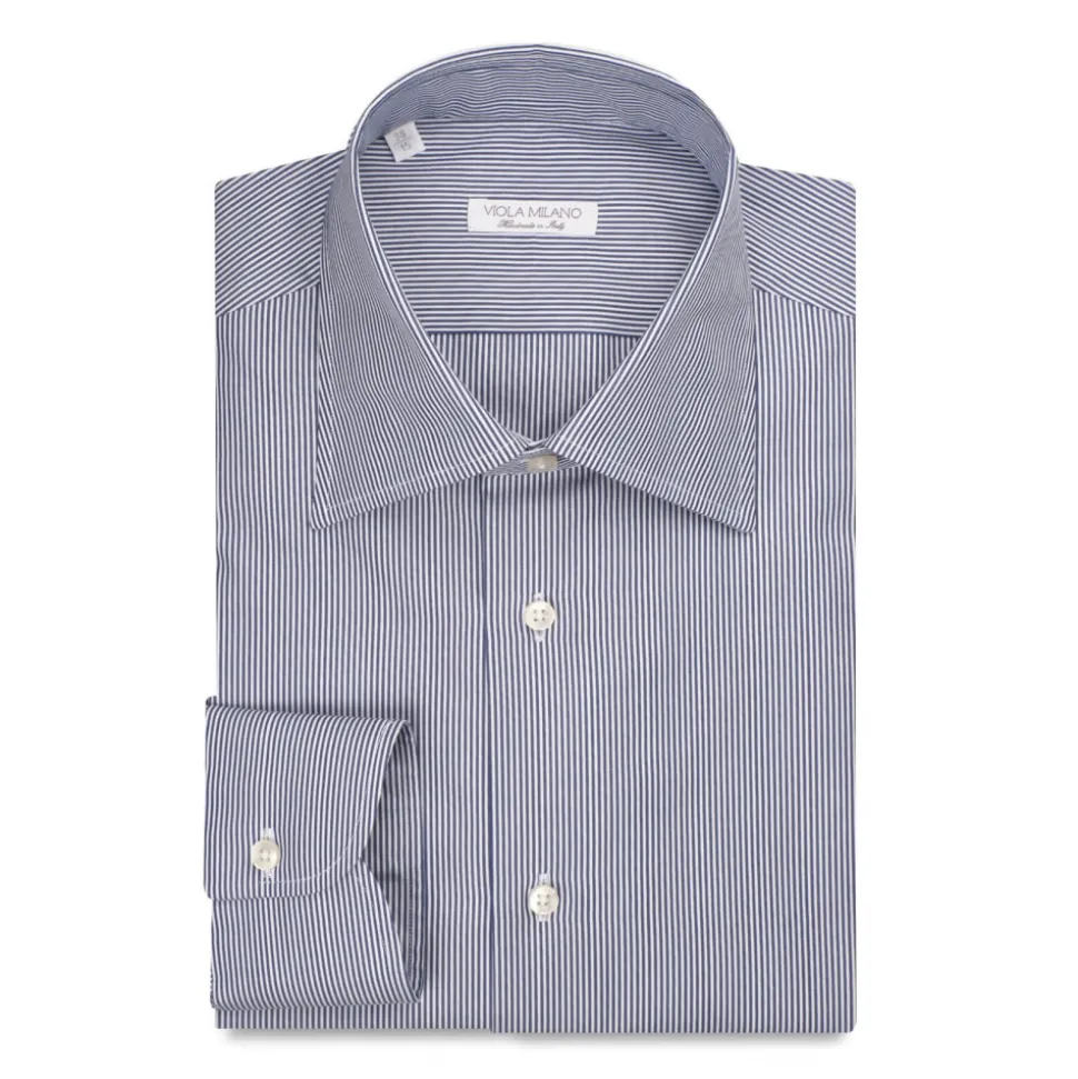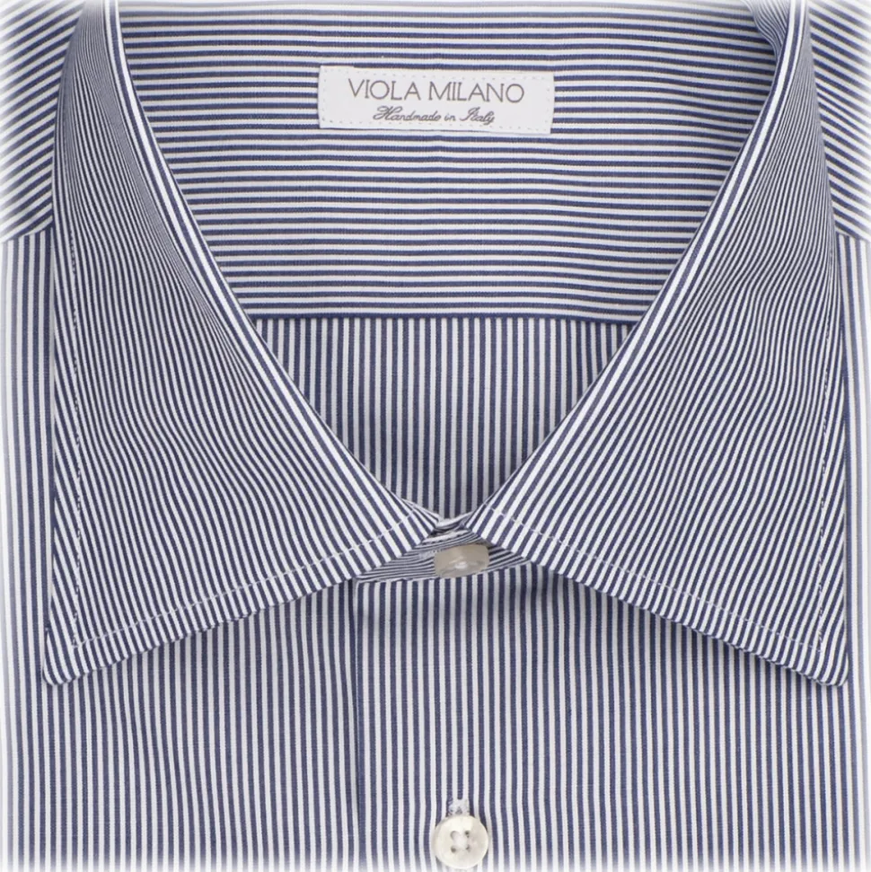 Viola Milano – Stripe Napoli Collar Shirt – Navy and White – Handmade in Italy – Luxury Exclusive Collection