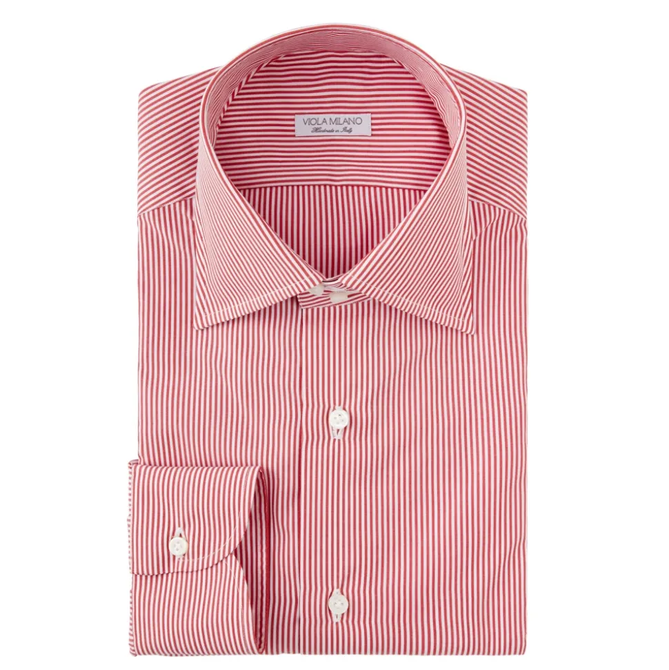Viola Milano – Stripe Napoli Collar Shirt – Red and White – Handmade in Italy – Luxury Exclusive Collection