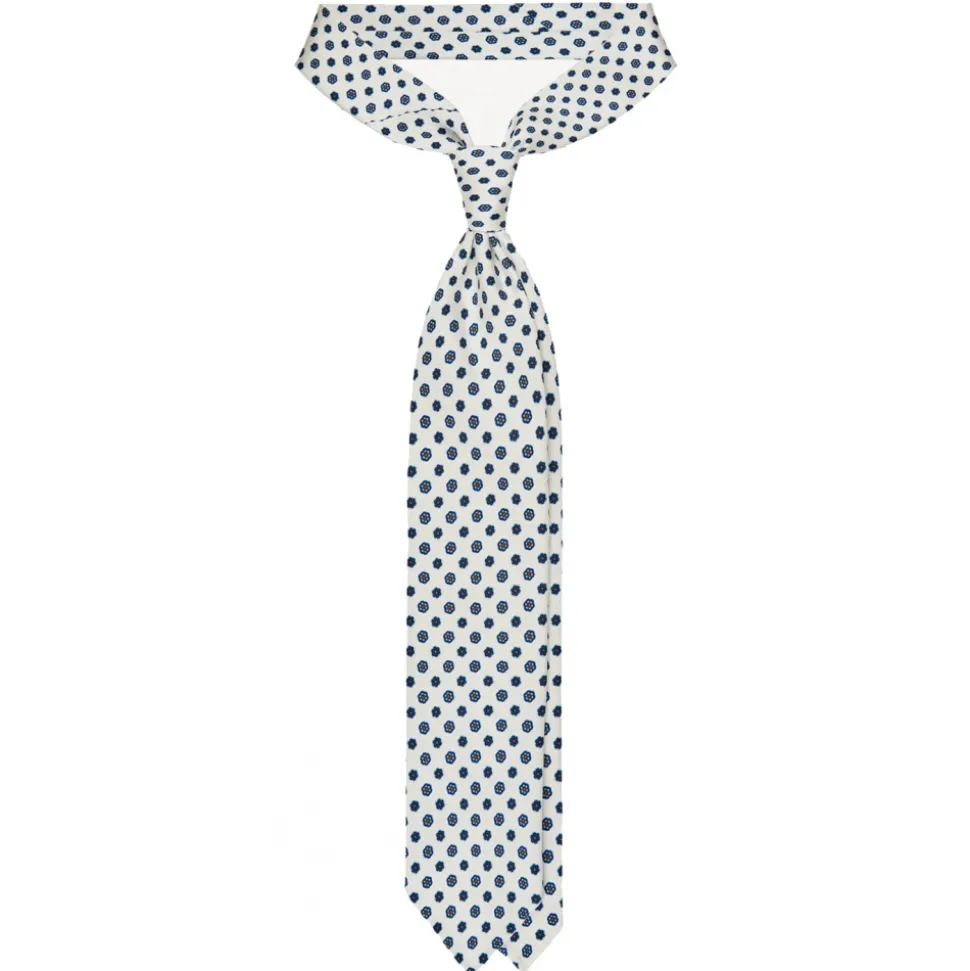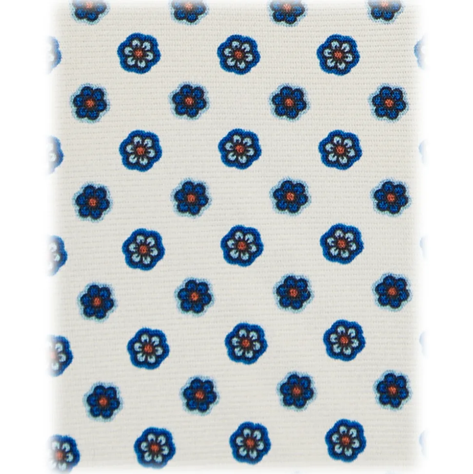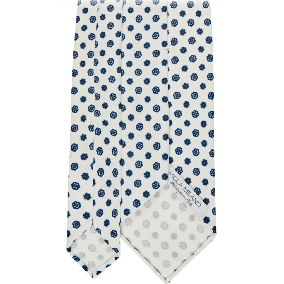 Viola Milano – Summer Floral 3-Fold Handprinted Untipped Silk Tie – White – Handmade in Italy – Luxury Exclusive Collection