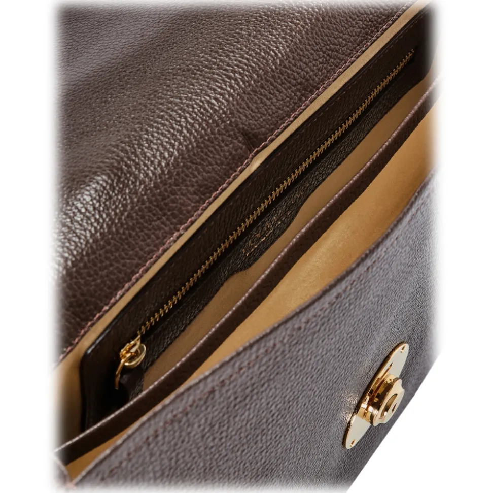 Viola Milano – The Light City Gold Lock Briefcase – Brown – Handmade in Italy – Luxury Exclusive Collection