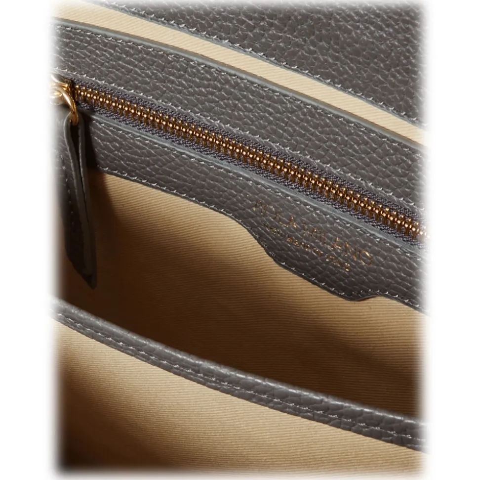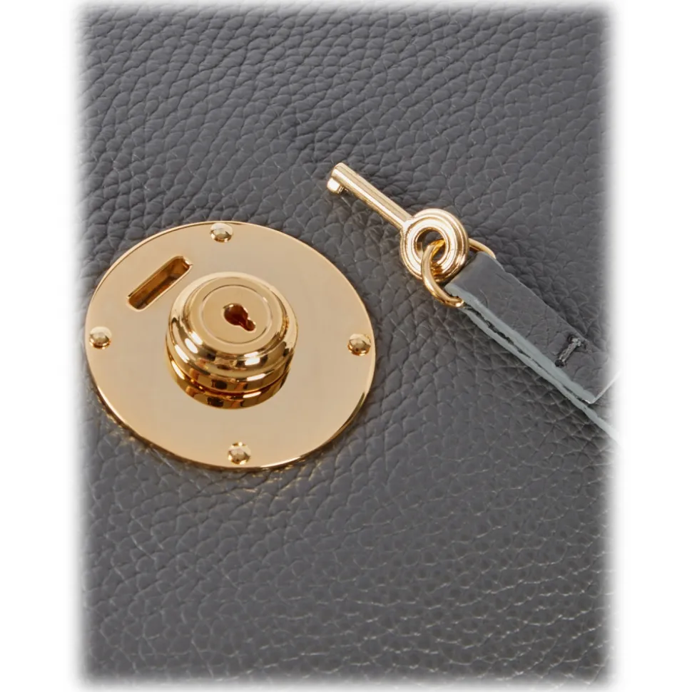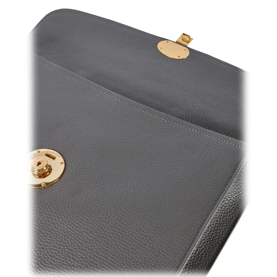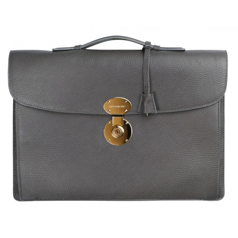 Viola Milano – The Light City Gold Lock Briefcase – Grey – Handmade in Italy – Luxury Exclusive Collection