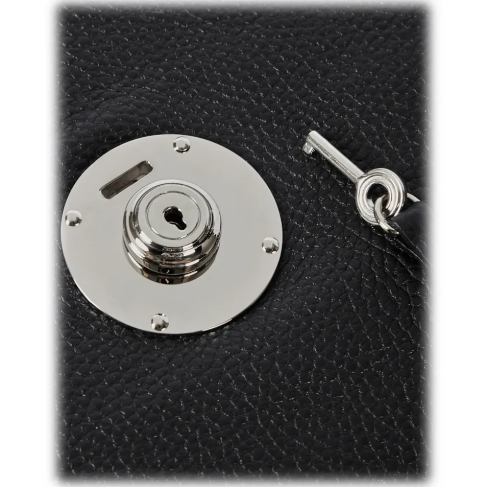 Viola Milano – The Light City Silver Lock Briefcase – Black – Handmade in Italy – Luxury Exclusive Collection