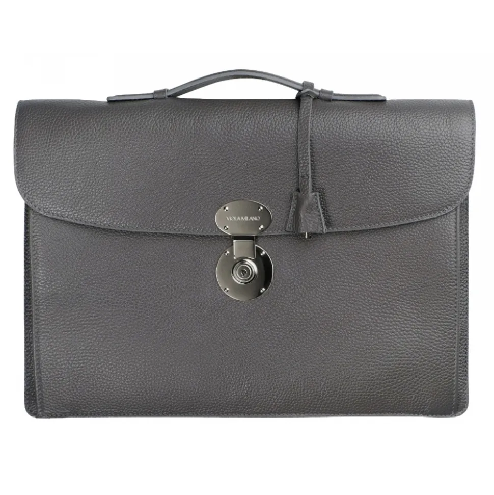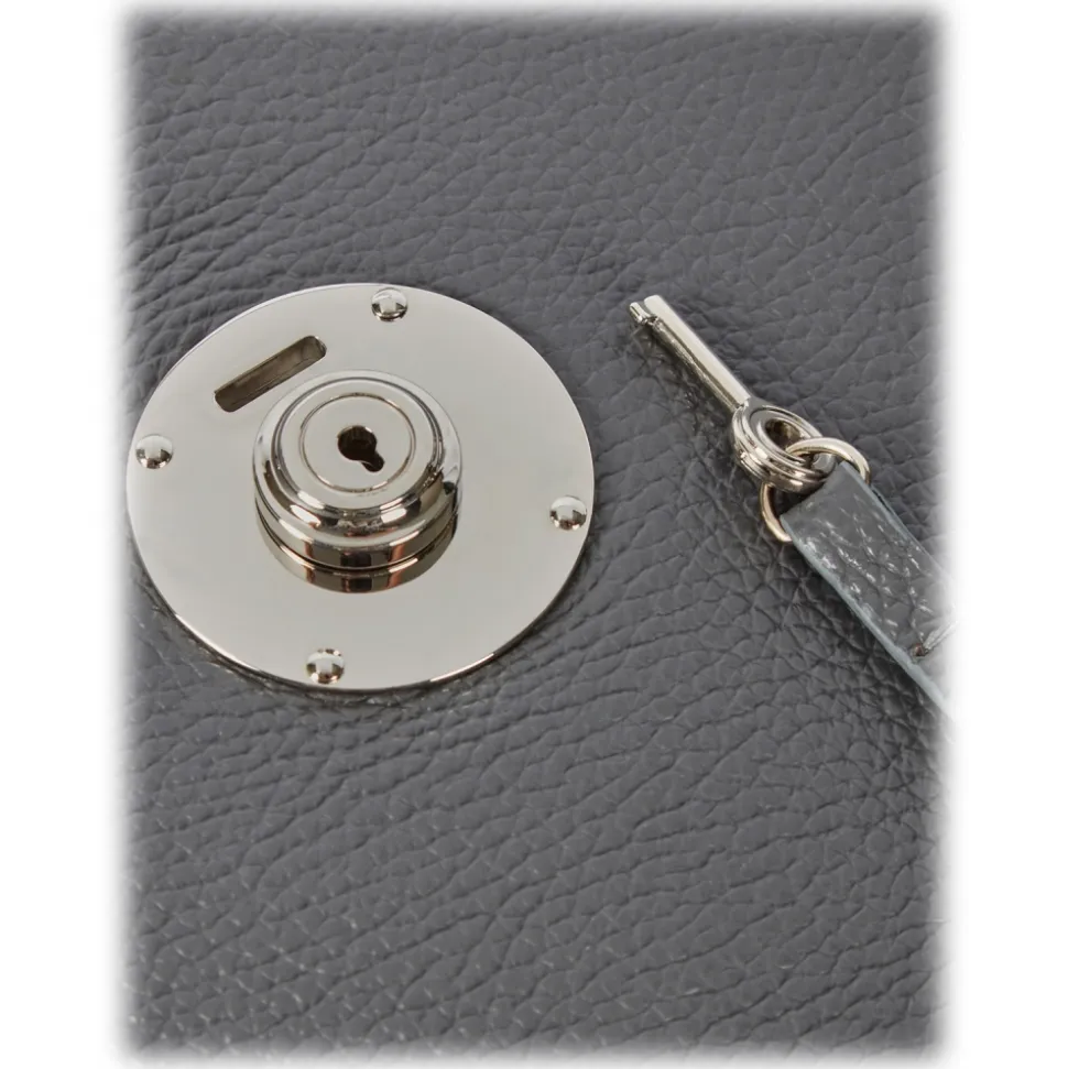 Viola Milano – The Light City Silver Lock Briefcase – Grey – Handmade in Italy – Luxury Exclusive Collection