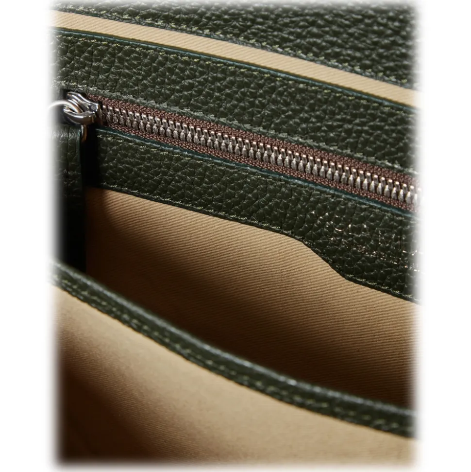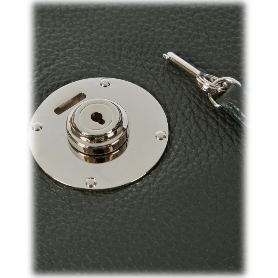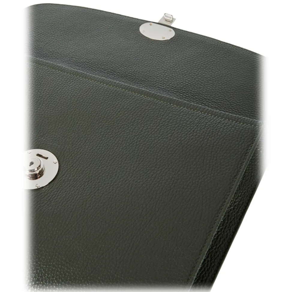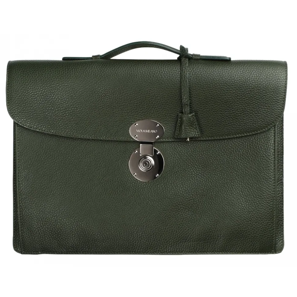 Viola Milano – The Light City Silver Lock Briefcase – Loden Green – Handmade in Italy – Luxury Exclusive Collection