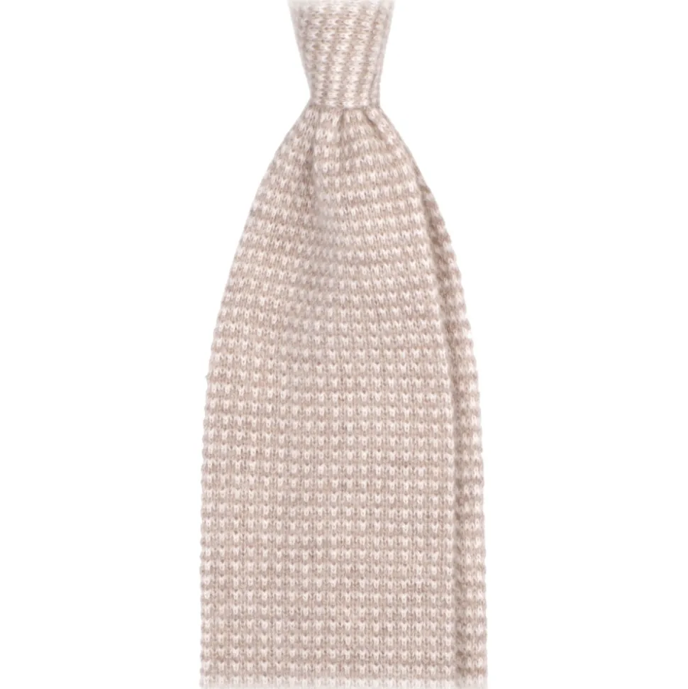 Viola Milano – Two-Tone Knitted 100% Cashmere Tie – Sand/Natural – Handmade in Italy – Luxury Exclusive Collection