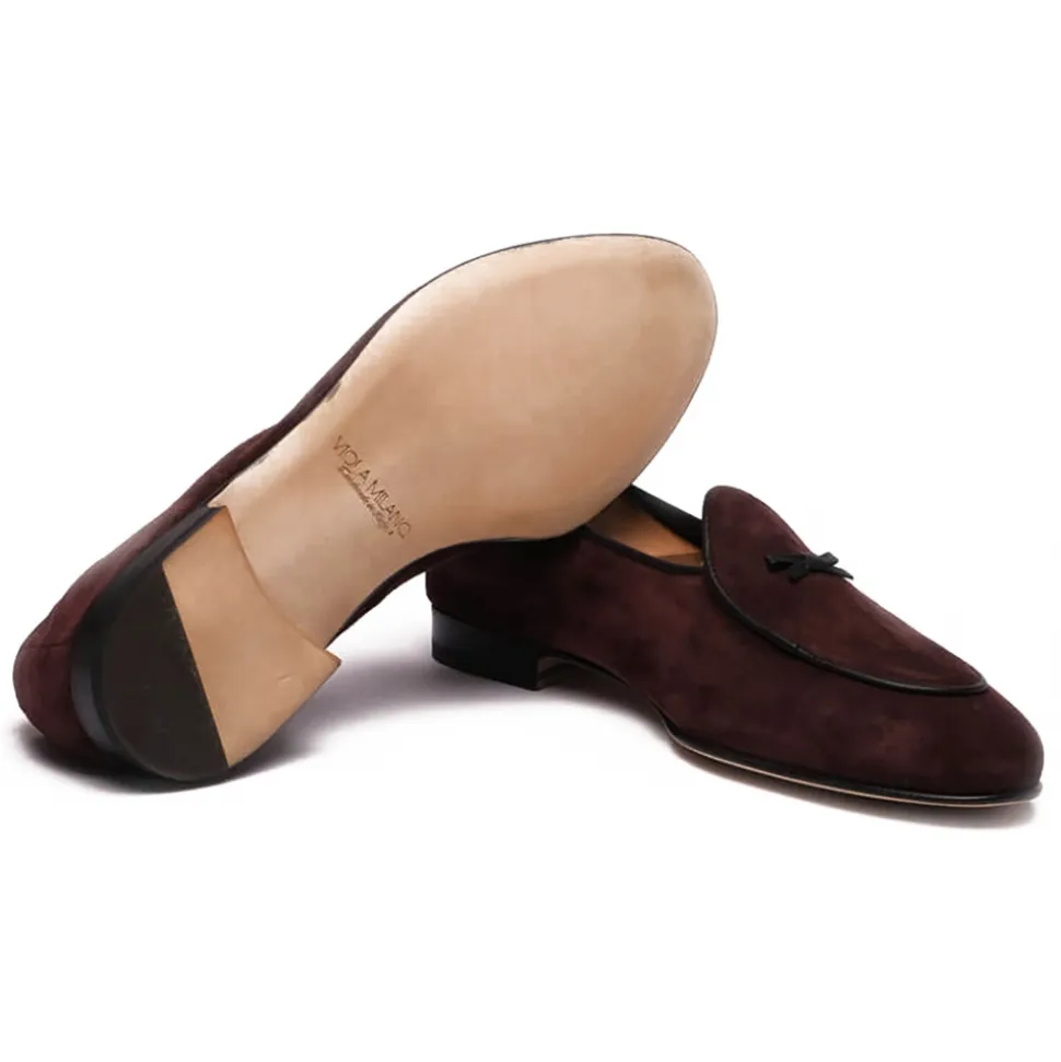 Viola Milano – Unlined Belgian Suede Loafer – Bordeaux – Handmade in Italy – Luxury Exclusive Collection
