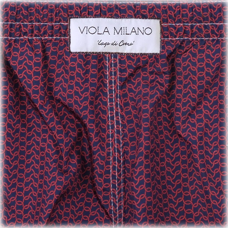 Viola Milano – Wave Pattern Printed Swimtrunks – Navy and Red – Handmade in Italy – Luxury Exclusive Collection