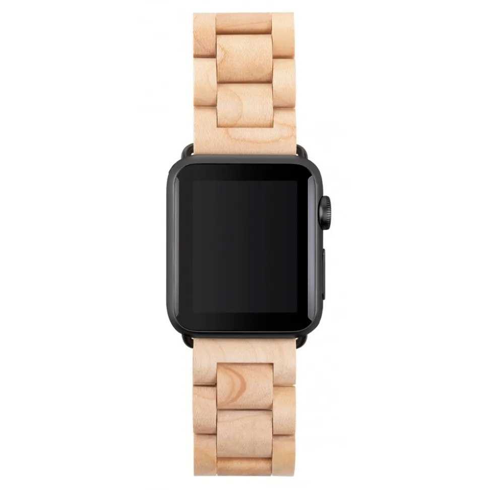 Woodcessories - Maple / Black - Wooden Apple Watch Band 38 mm - Eco Strap - Stainless Steel - Wooden Apple Watch Strap - Avvenice