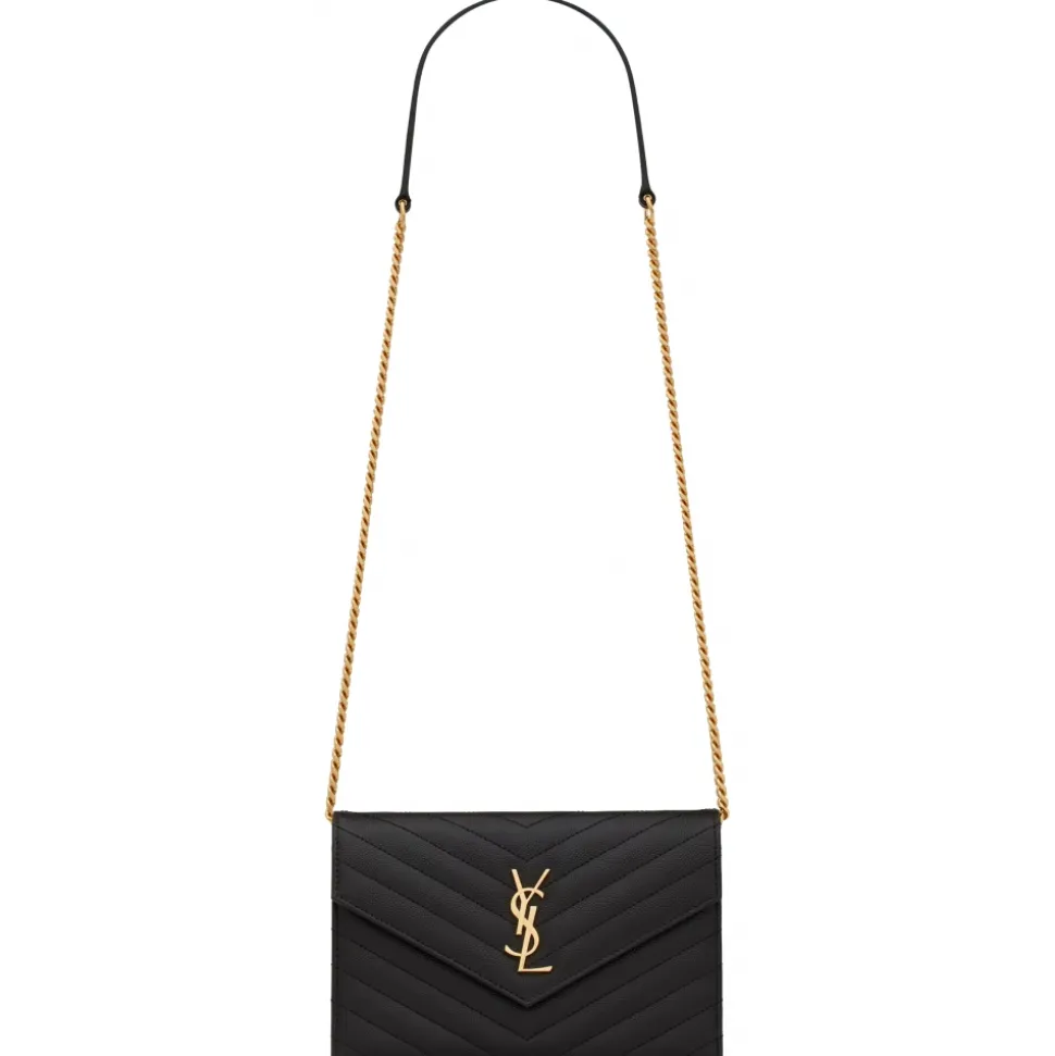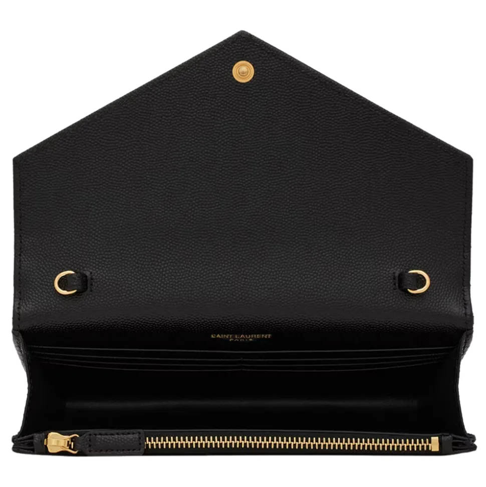 Yves Saint Laurent – Cassandre Envelope Chain Wallet in Grain De Poudre Leather – Black – Saint Laurent Exclusive Collection