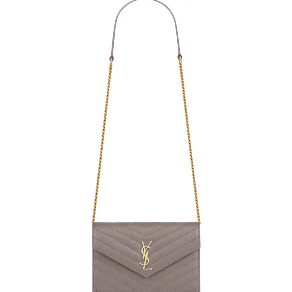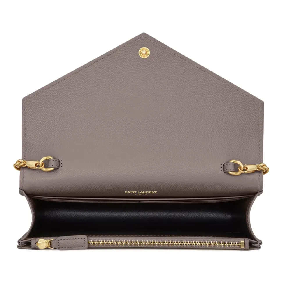 Yves Saint Laurent – Cassandre Envelope Chain Wallet in Grain De Poudre Leather – Fog – Saint Laurent Exclusive Collection