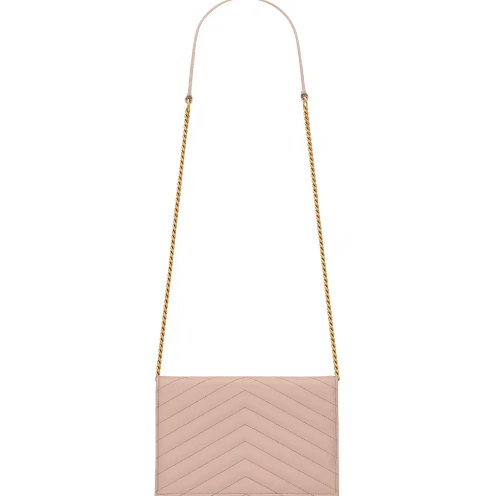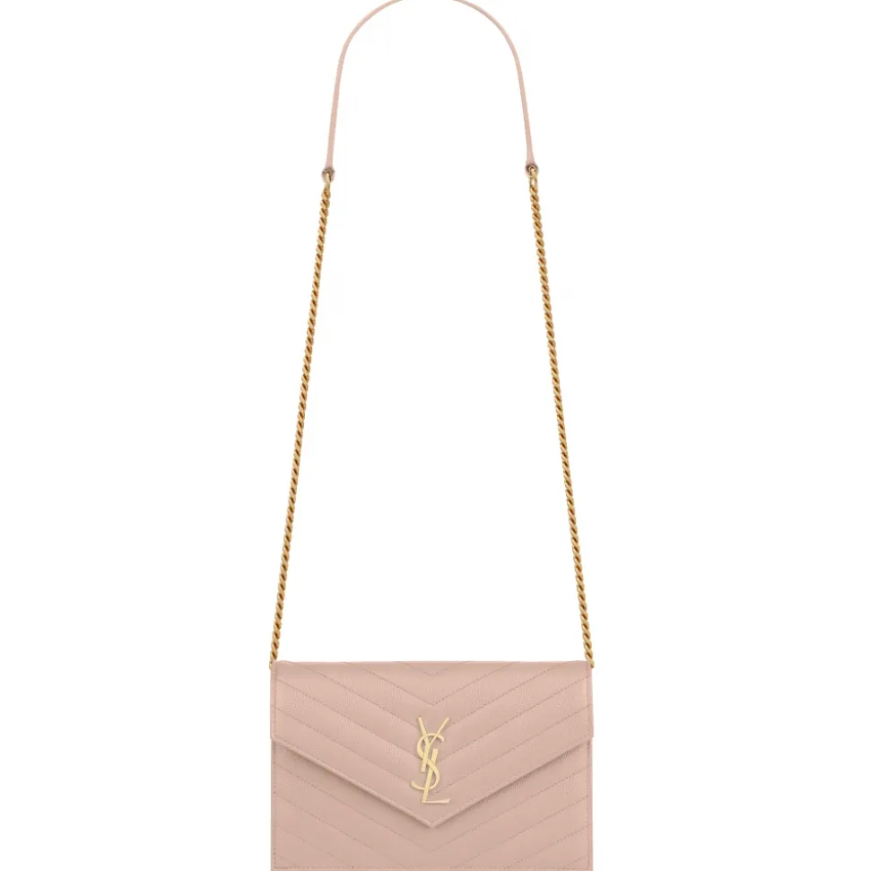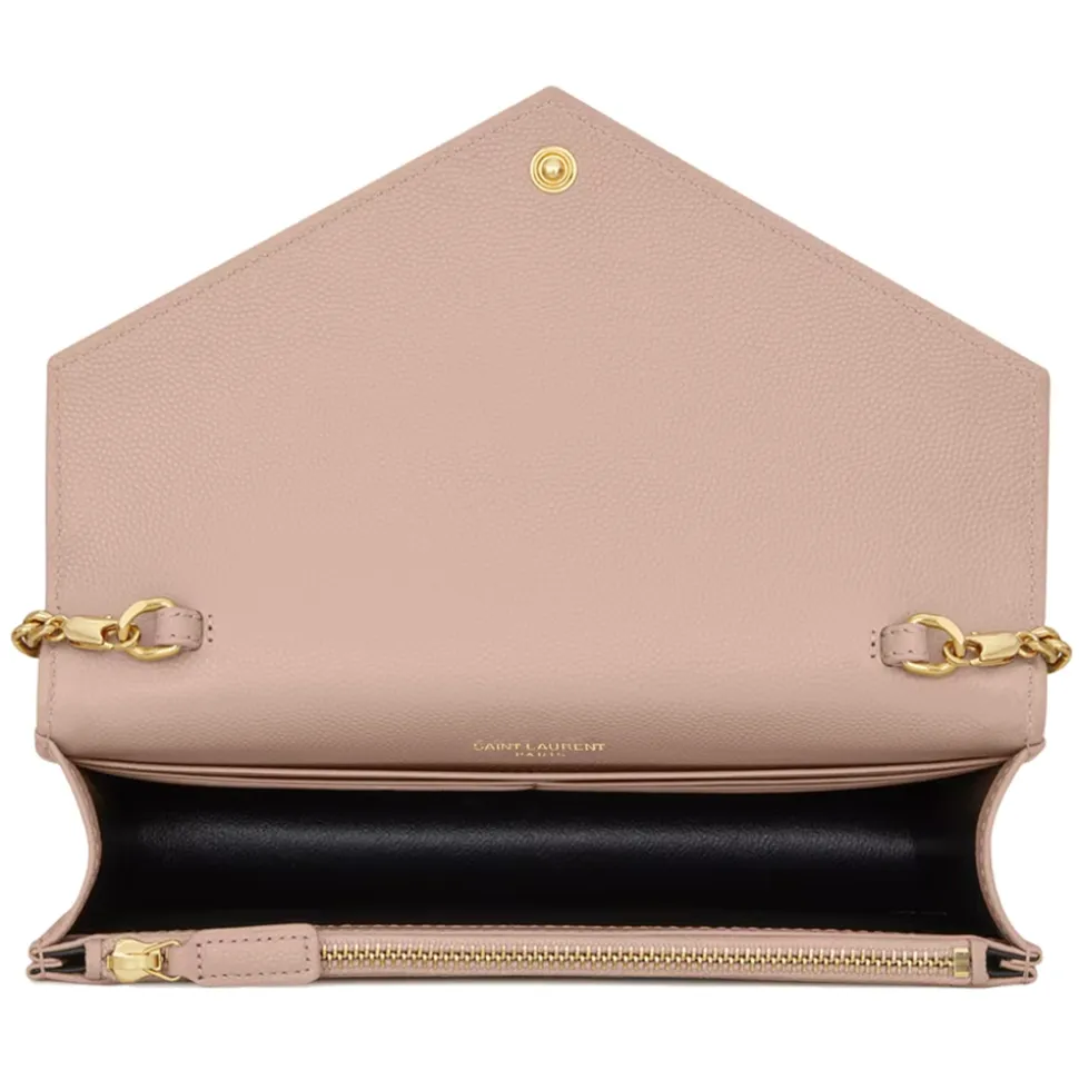 Yves Saint Laurent – Cassandre Envelope Chain Wallet in Grain De Poudre Leather – Pale Pink – Saint Laurent Exclusive Collection