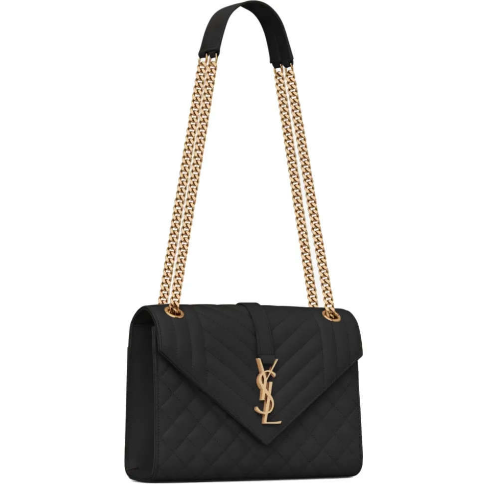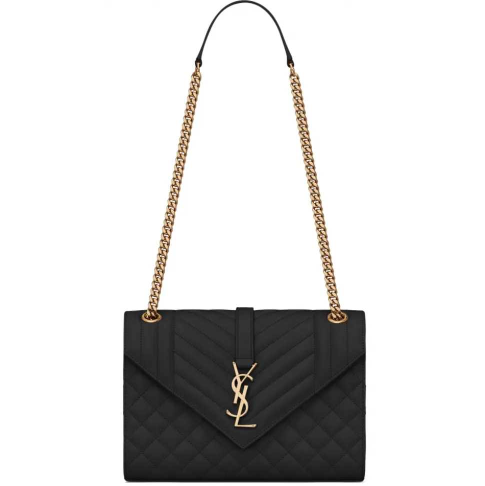 Yves Saint Laurent – Envelope Medium in Quilted Grain de Poudre Embossed Leather – Black Light Bronze – Saint Laurent Exclusive Collection