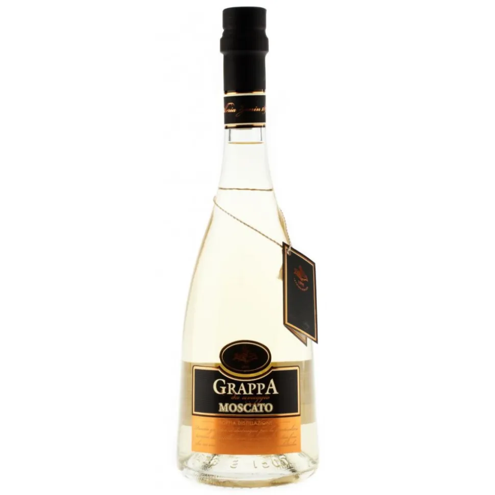 Moscato Grappa comes from the distillation of Muscat marc. It is a young grappa with a crystalline color with 40 ° of alcohol content, and has an intense aroma in which you can hear the typical and sweet notes of muscat grapes, refined aromas of peach, apple, pear, orange, candied fruit and white rose with pungency of alcohol that you feel slightly. The flavor fully resumes in its softness immediately feels the alcohol but dissolves almost immediately, the hints of muscat grapes with a sweet sensation, such as to make it appreciated even by those who usually do not taste grappa. The finish is very persistent with hints of grapes, banana and peach.