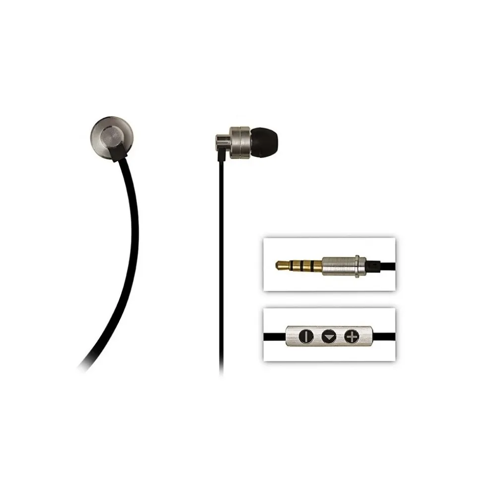Optimized for Apple products. In-earphones made from solid milled aluminum. Flat cable, volume/track controller, microphone. Watchmaking finishings.