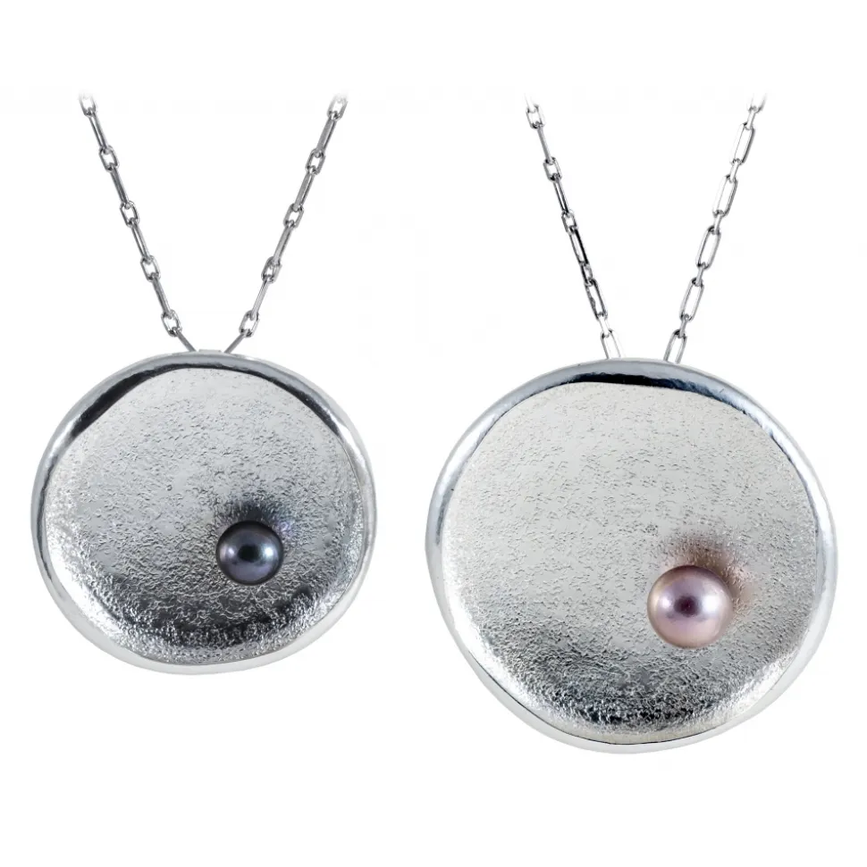 Ab Ove – Round Flat Little Pendant in Silver with River Pearl – Venus Collection – Handcrafted Necklace – High Quality Luxury