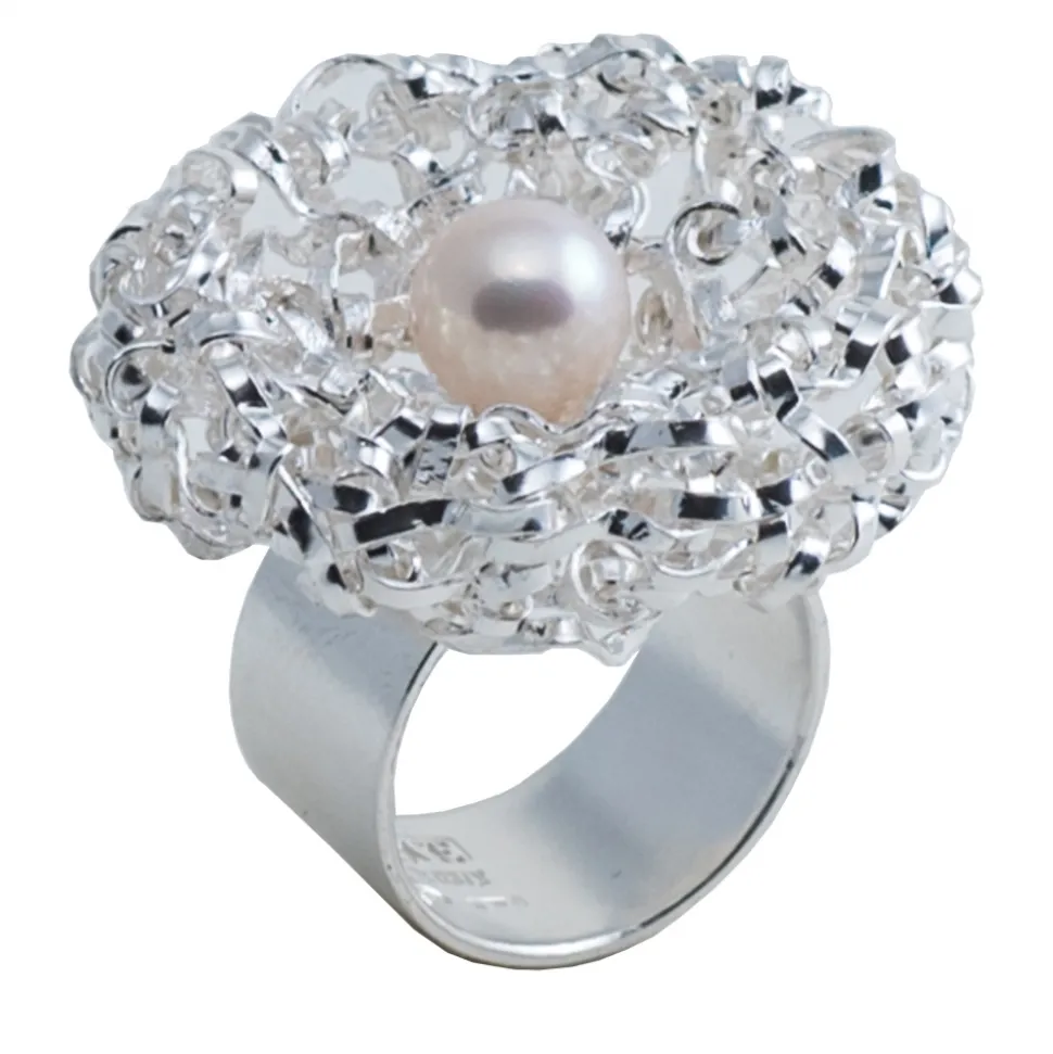 Ab Ove – Twine Round Ring in Silver with White River Pearl – Twine Collection – Handcrafted Ring – High Quality Luxury