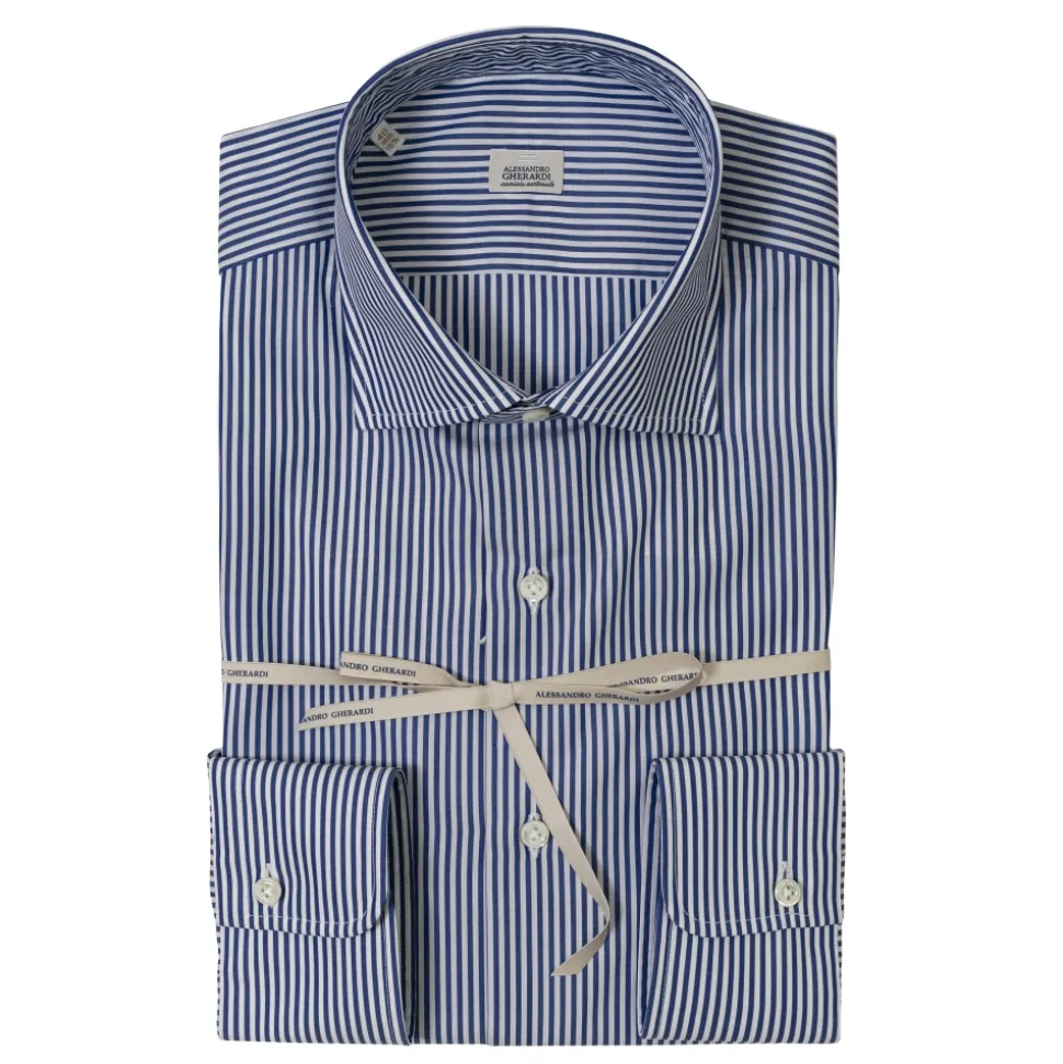 Alessandro Gherardi – Long Sleeve Shirt – Blue Stripe – Shirt – Handmade in Italy – Luxury Exclusive Collection