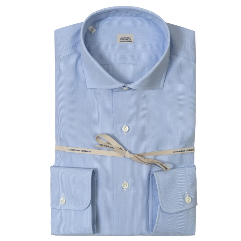 Italian artisan shirt Alessandro Gherardi. Regular fit with pinces. Long sleeve. Slightly rounded wrist.