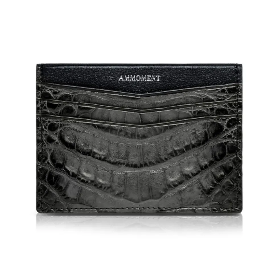 Handmade credit card holder in caiman leather exterior with cowhide leather lining made in Italy.