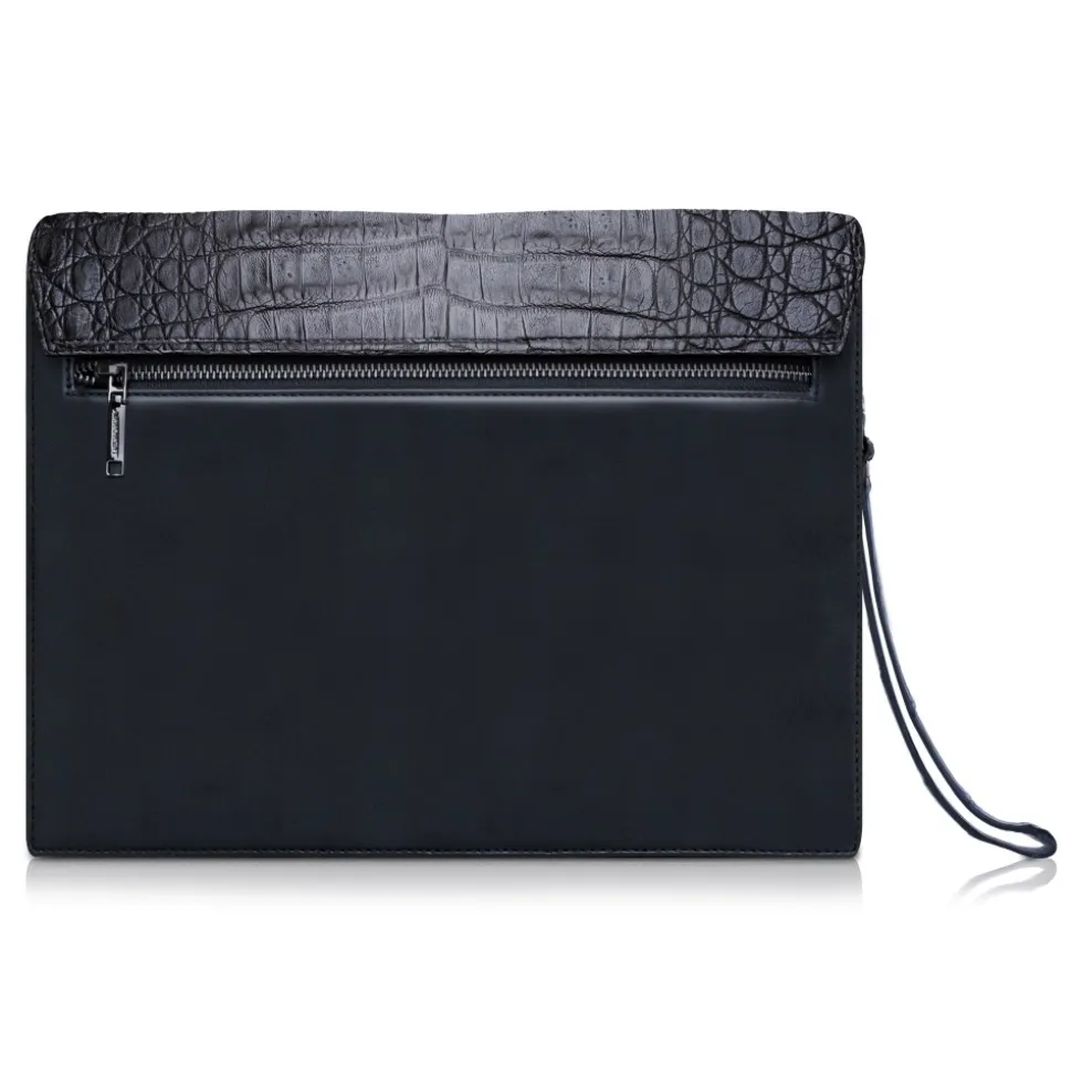 Handmade leather pete clutch bag in caimanĀ and cowhide leather lining made in Italy.