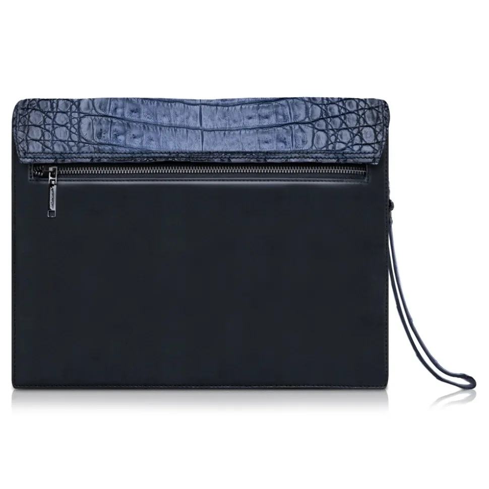 Handmade leather pete clutch bag in caimanĀ and cowhide leather lining made in Italy.