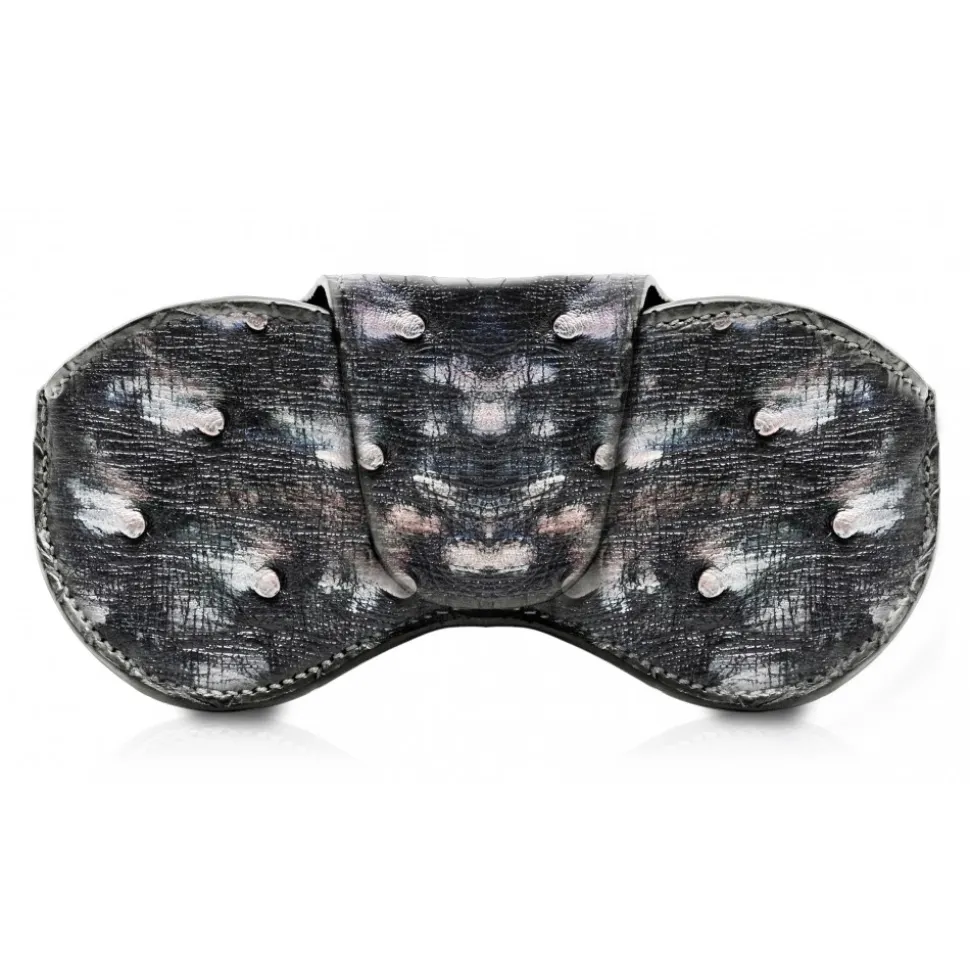 Handmade eyeglass case in ostrich leather made in Italy.