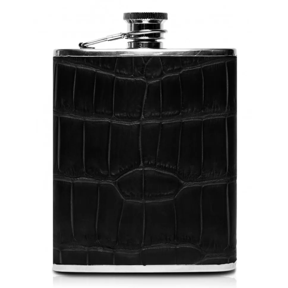 Handmade hip flask in crocodile leather made in Italy.