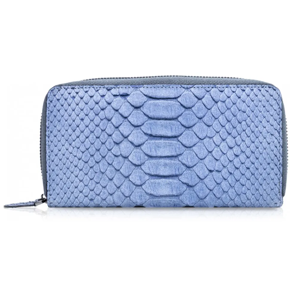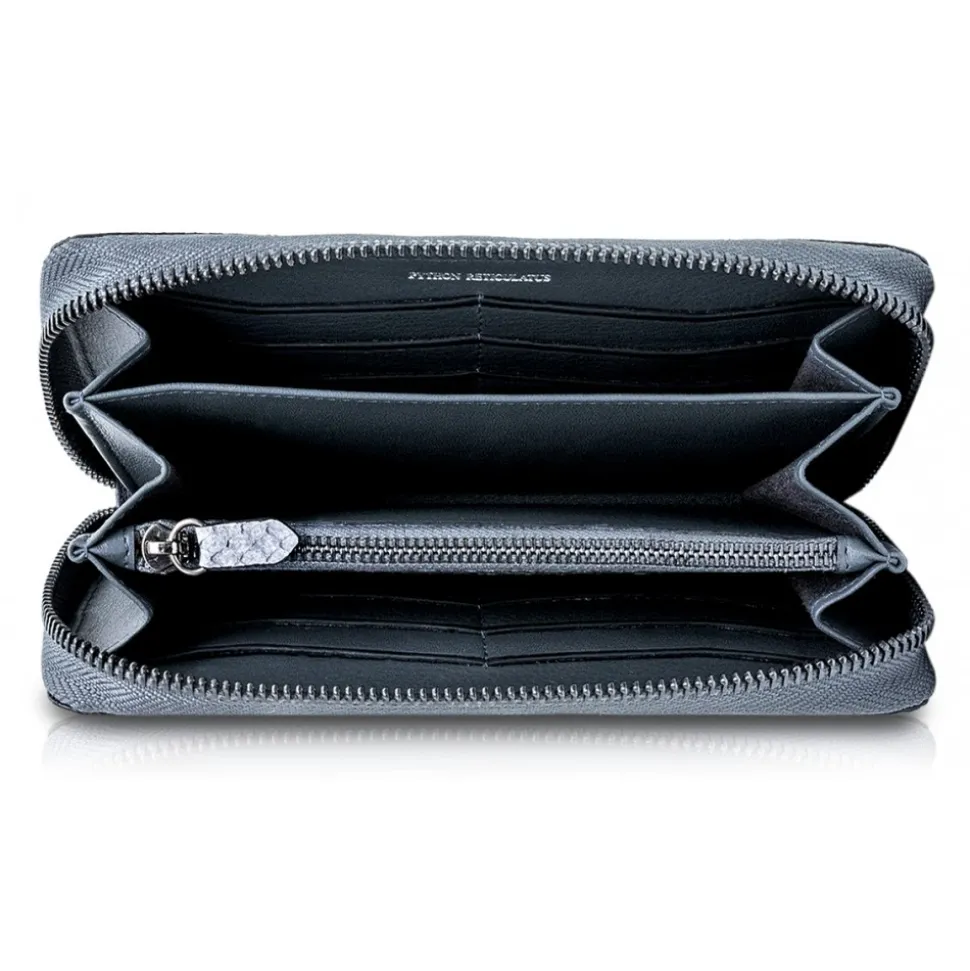 Handmade long zipper wallet in python and cowhide leather lining made in Italy.