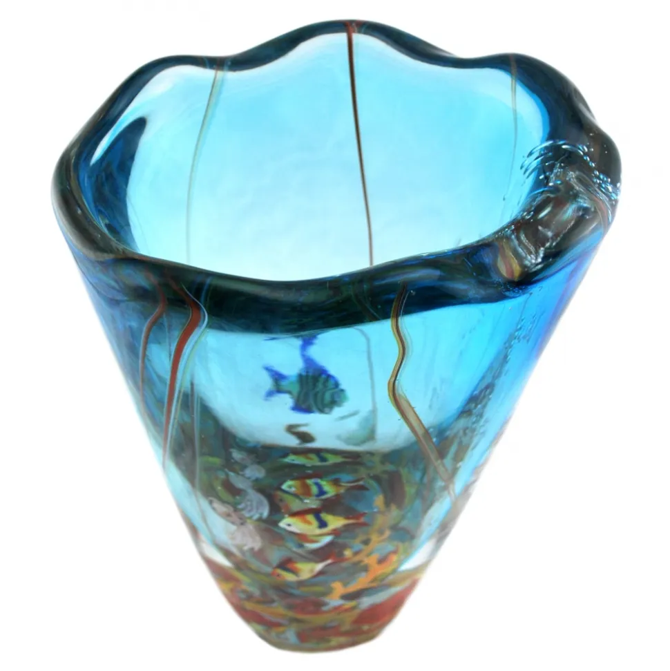 Glass vase with submerged glass fishes. Completely hand-made in Murano, Venice and available in 2 different sizes.