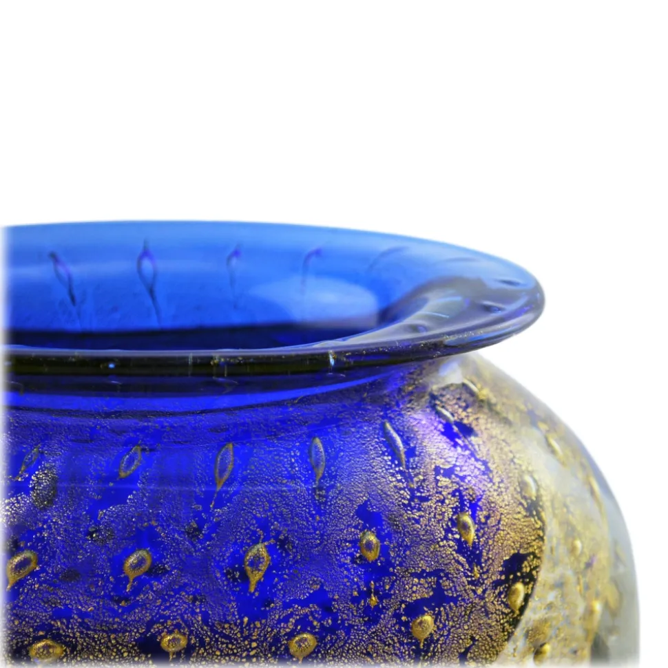 Ars Cenedese Murano – Bollinato Bown 24k Gold – Blue – Handcrafted Venetian Vase Handmade by Venetian Glassmasters – High Quality Luxury
