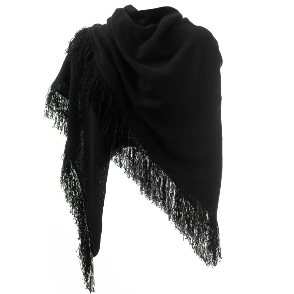 Avvenice – Cape – Precious Cashmere Keffiyeh – Black – Handmade in Italy – Exclusive Luxury Collection