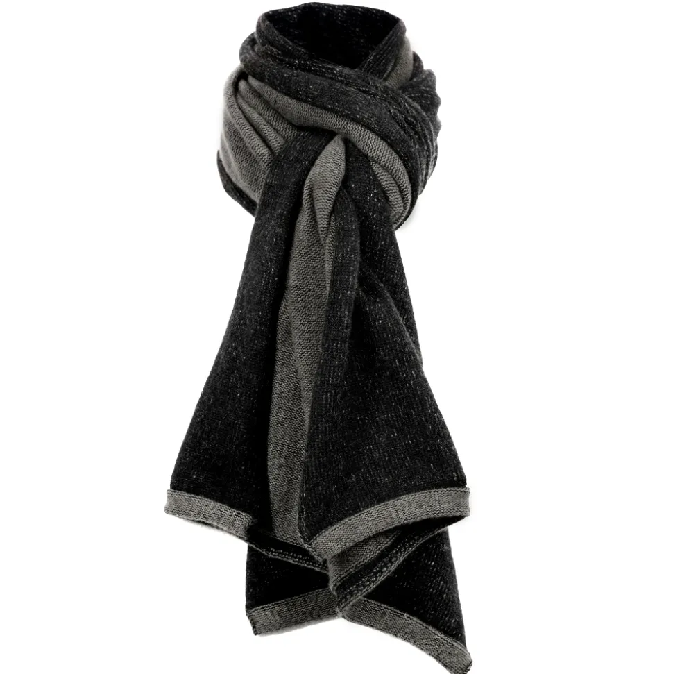 Avvenice – Precious Cashmere Scarf – Double Face – Bicolor – Black Anthracite – Handmade in Italy – Exclusive Luxury Collection