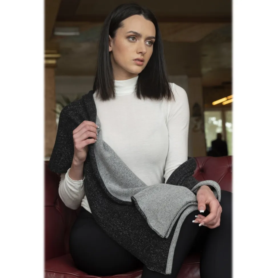 Avvenice – Precious Cashmere Scarf – Double Face – Bicolor – Black Grey – Handmade in Italy – Exclusive Luxury Collection
