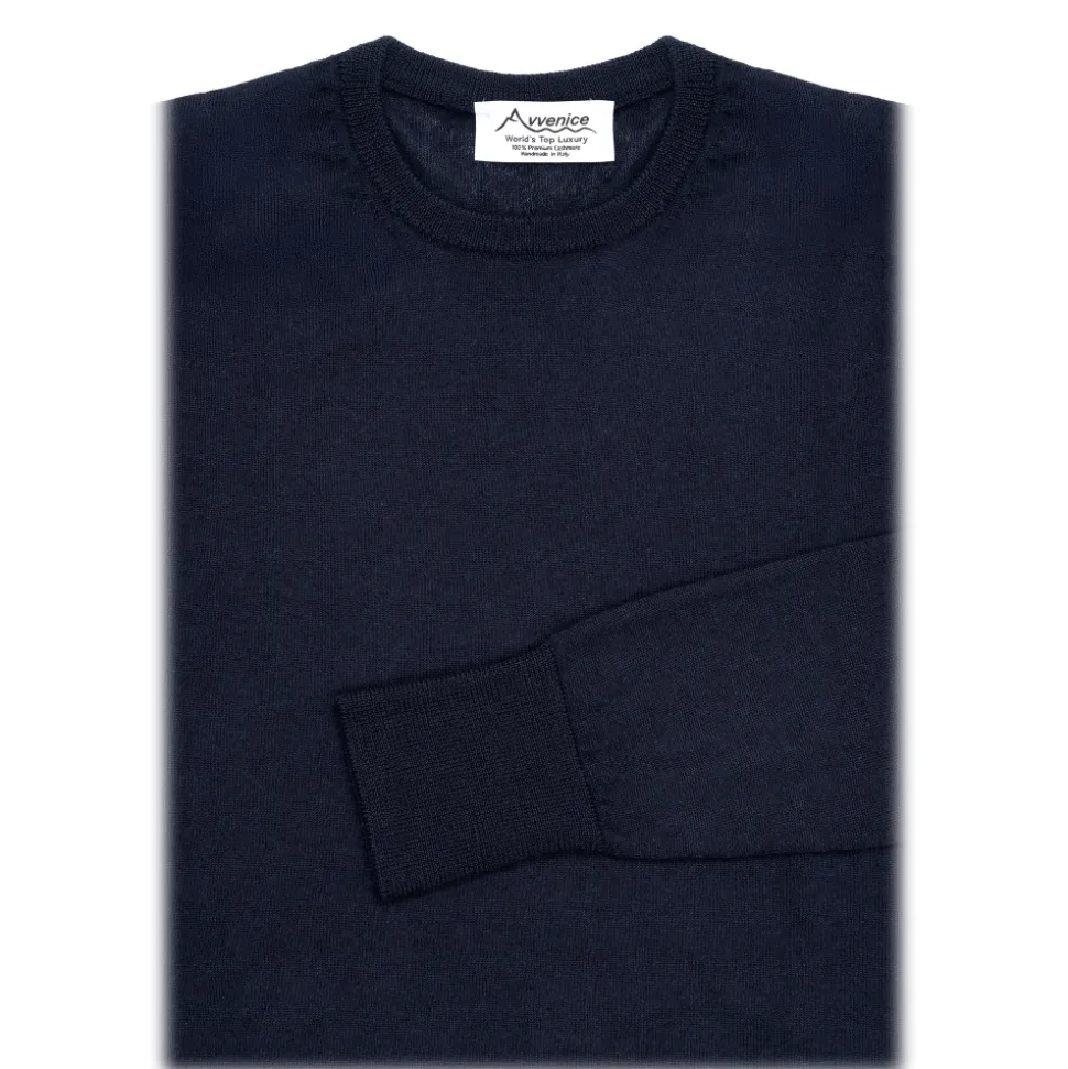 Avvenice – Theria – Woman Loro Piana Cashmere Crew Neck Sweater – Blue – Knitwear – Luxury Exclusive Collection