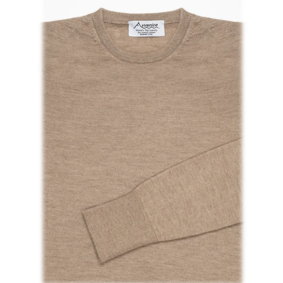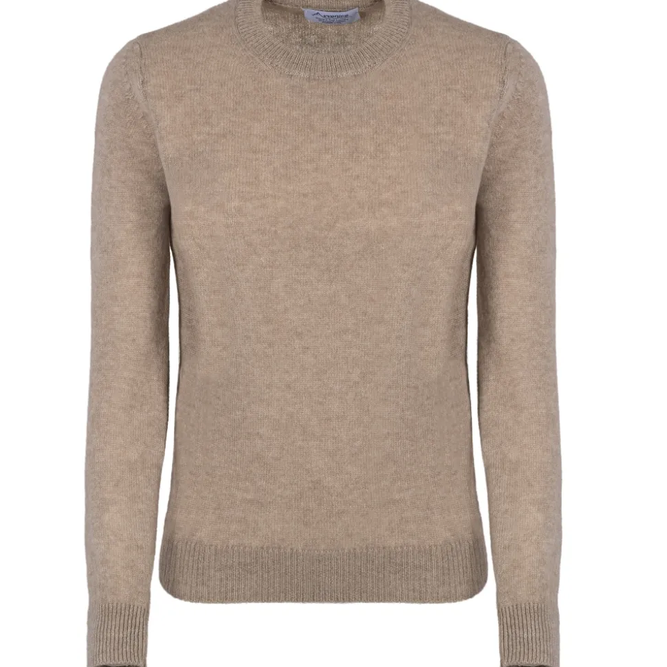 Avvenice – Theria – Woman Loro Piana Cashmere Crew Neck Sweater – Tundra – Knitwear – Luxury Exclusive Collection