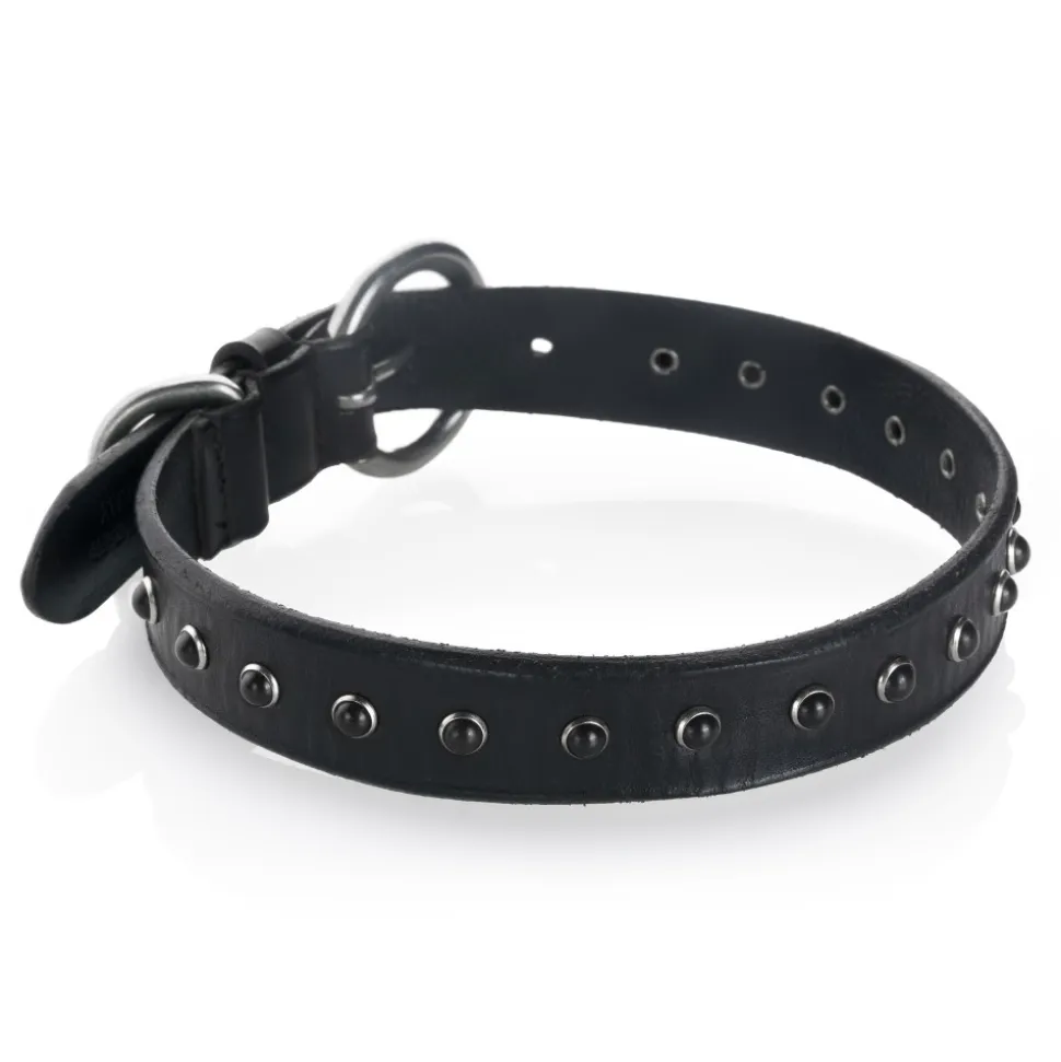CABO Black Collar | Composition: Genuine leather decorated with black cabochons. B.WILDE name tag. Personalised on request. Silver or antique gold hardware.