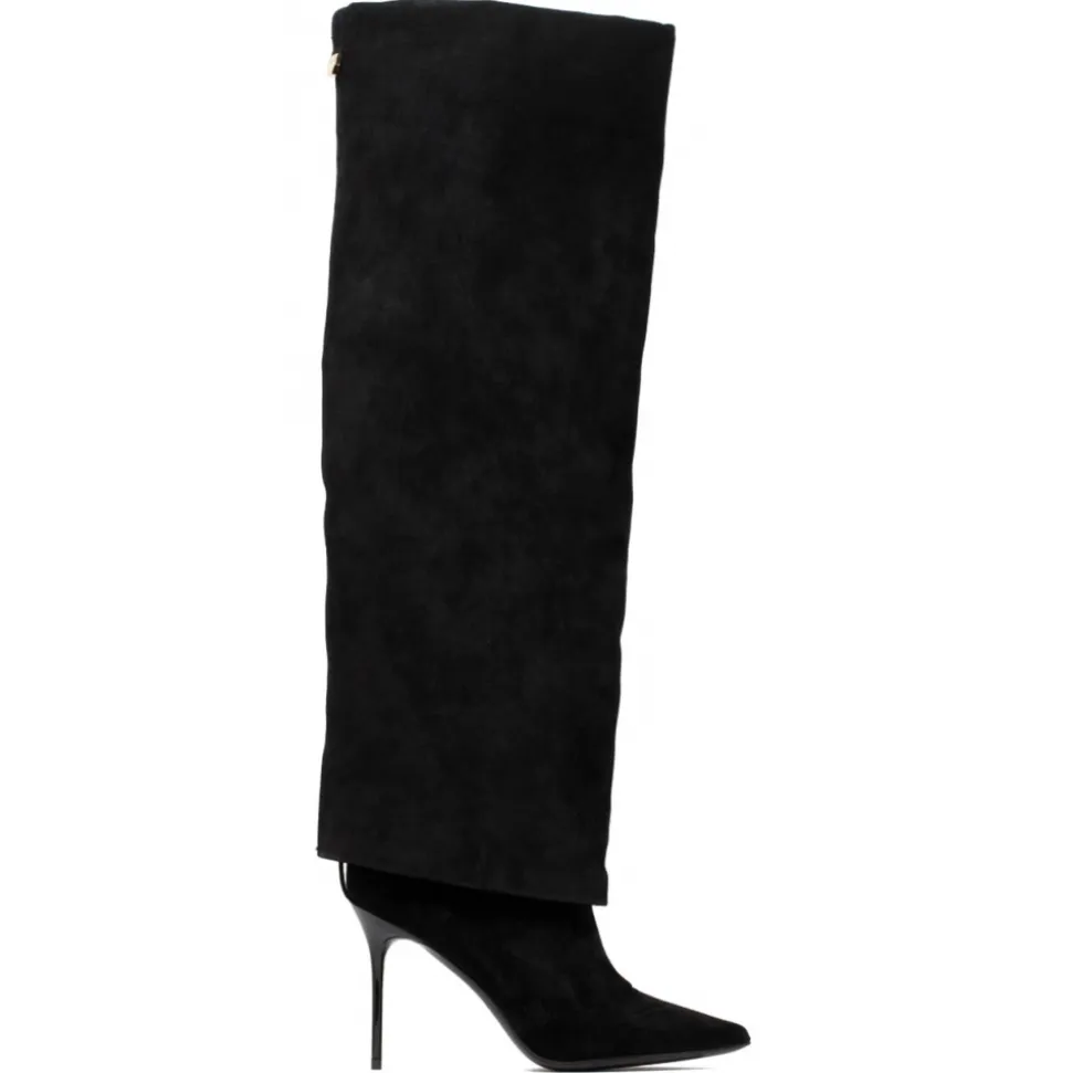 Balmain Black Ariel Boots. Black leather boots, pointed toe, slip on style, 120 mm high heel, leather sole.