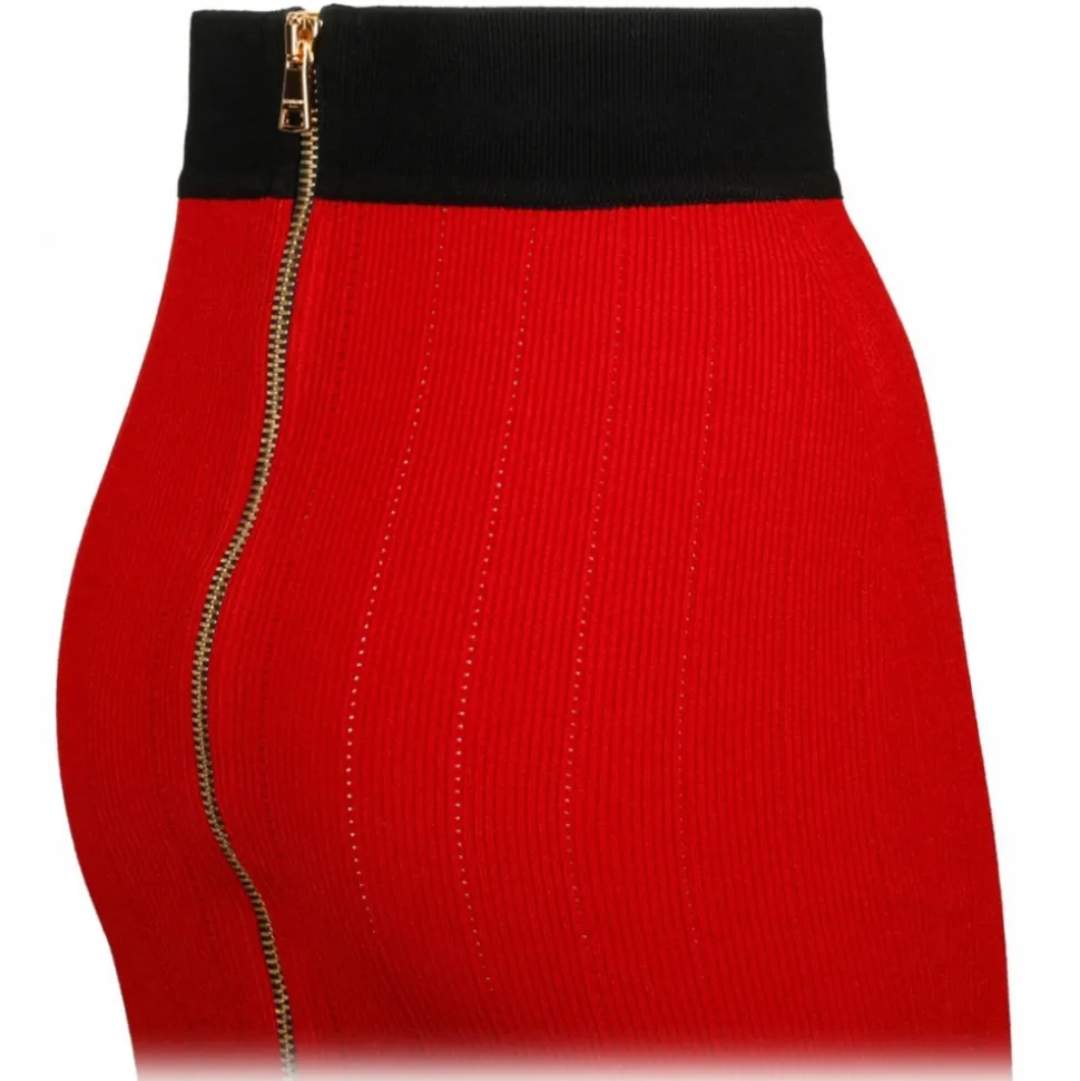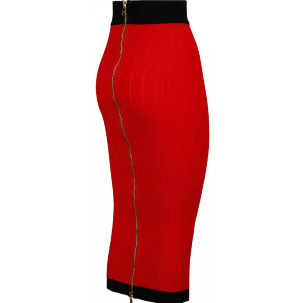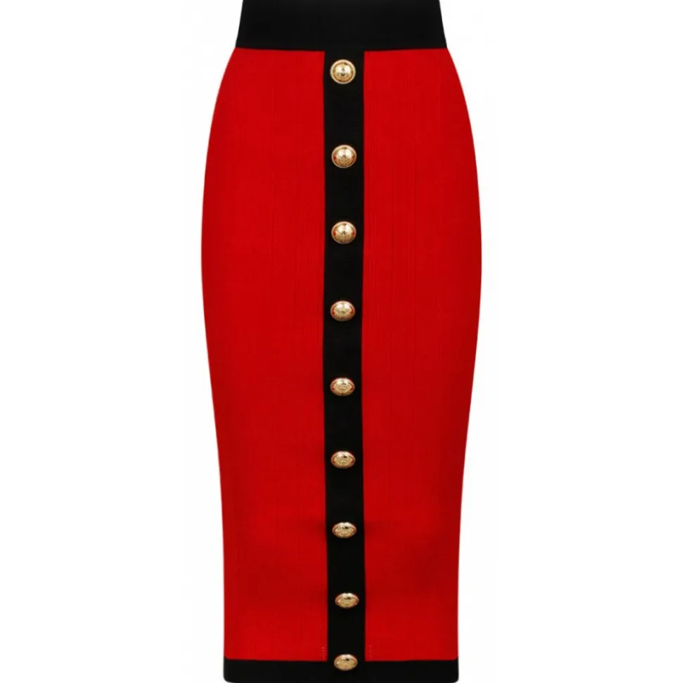 Balmain – Buttoned Knit Midi Skirt – Red Black – Balmain Exclusive Luxury Collection