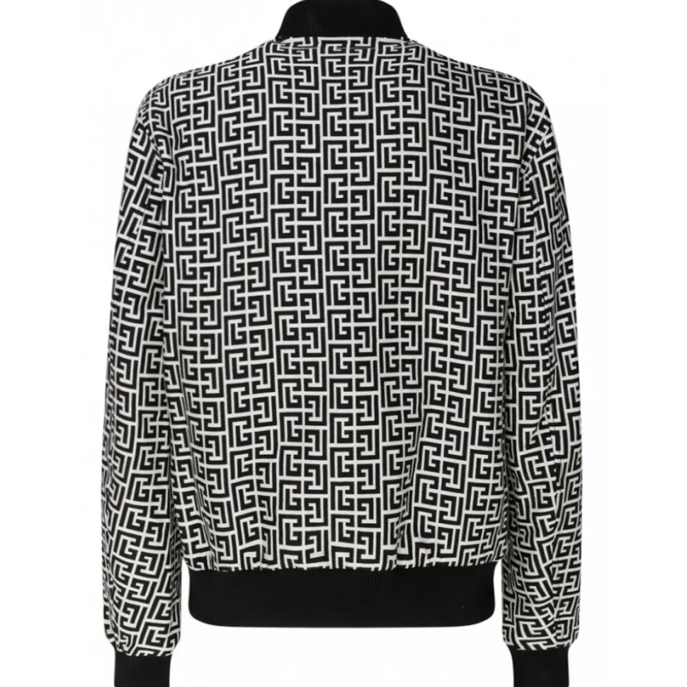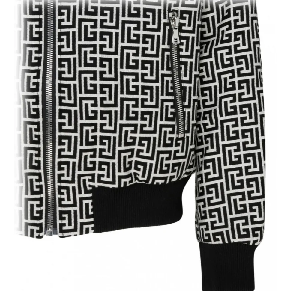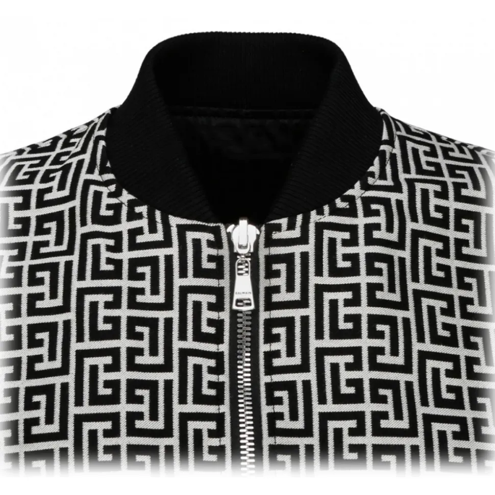 Balmain – Cotton Monogram Pattern Reversible Bomber Jacket – Black White – Balmain Exclusive Luxury Collection