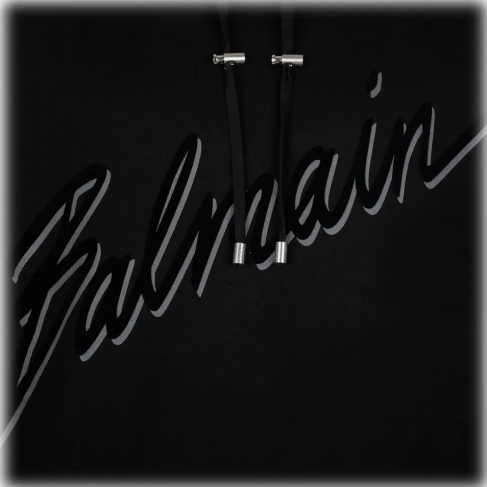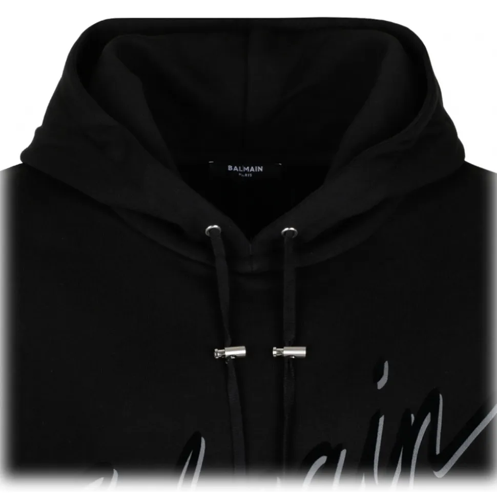 Balmain – Flocked Logo Hoodie – Black – Balmain Exclusive Luxury Collection
